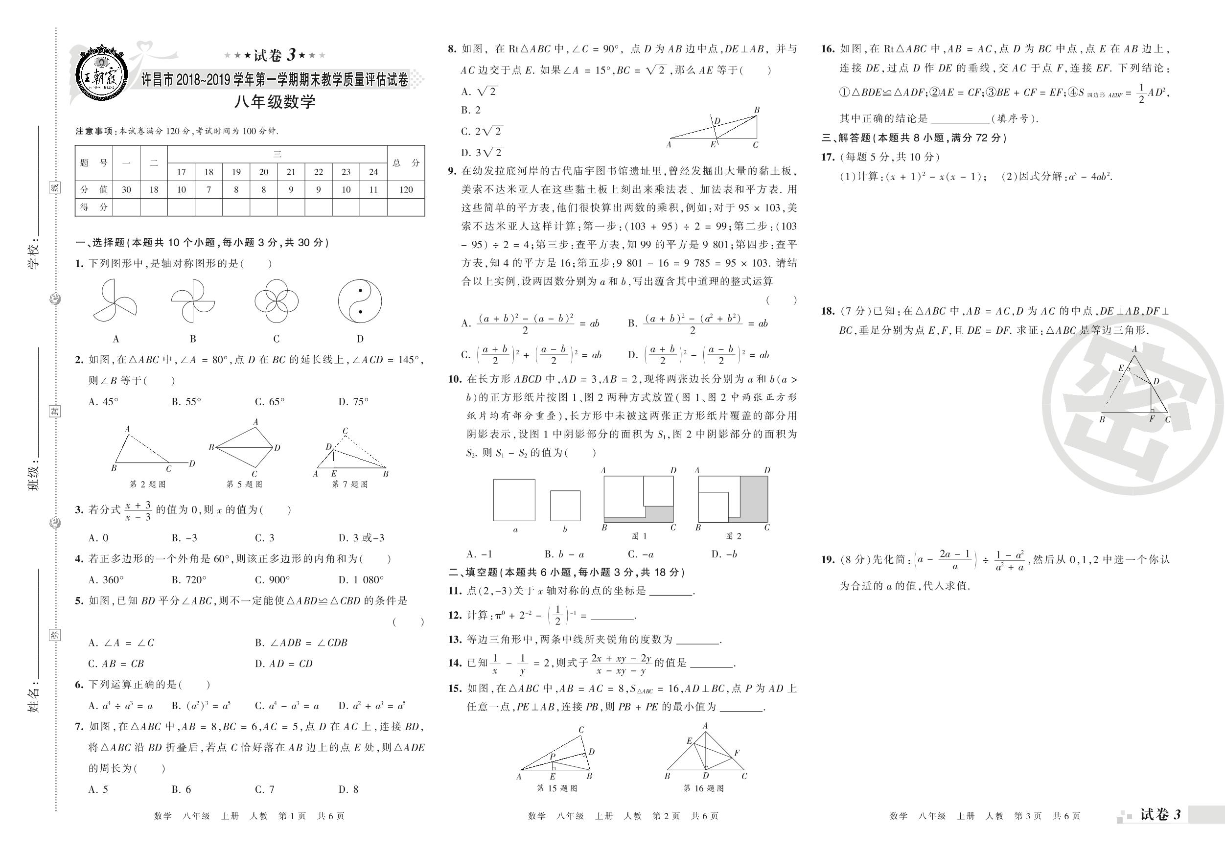 2018-2019学年第一学期许昌市八年级数学试卷(人教版)【3】