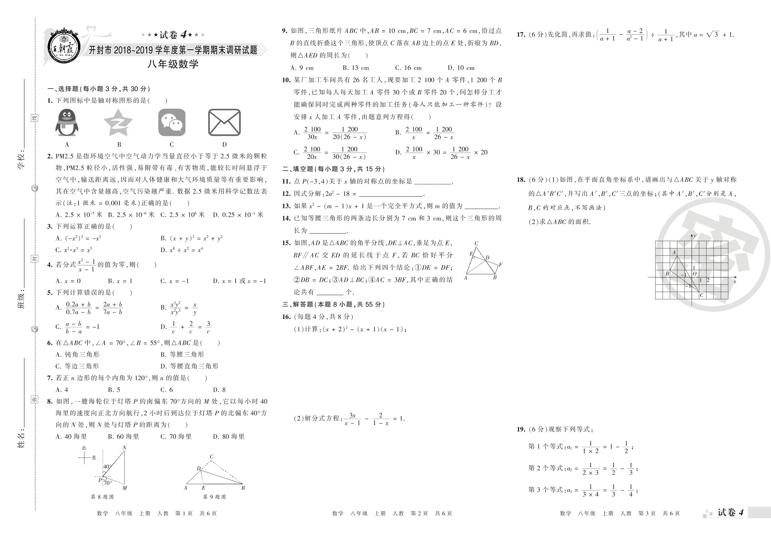 2018-2019学年第一学期开封市八年级数学试卷(人教版)【4】