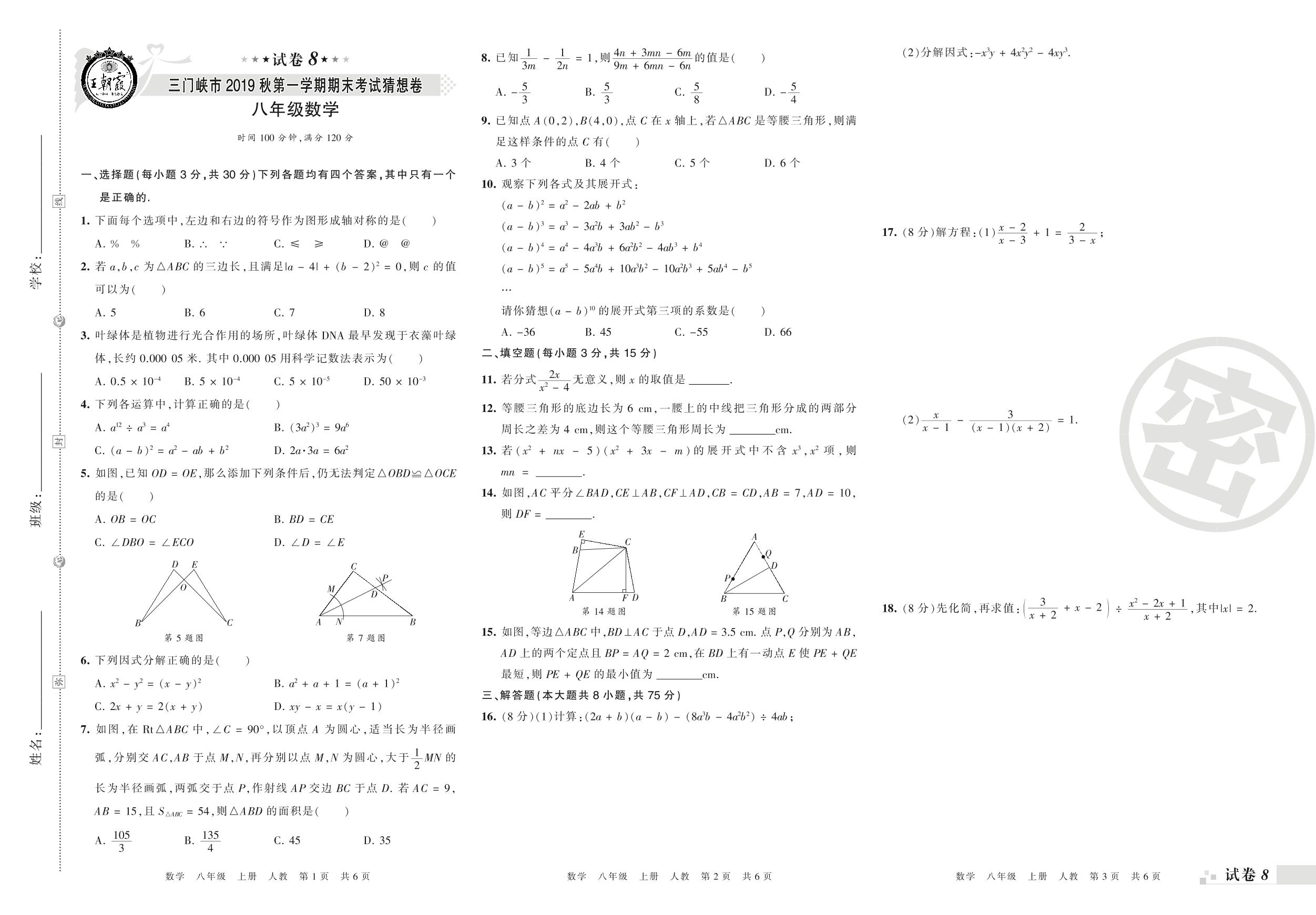 2018-2019学年第一学期三门峡市猜想卷八年级数学试卷(人教版)【8】