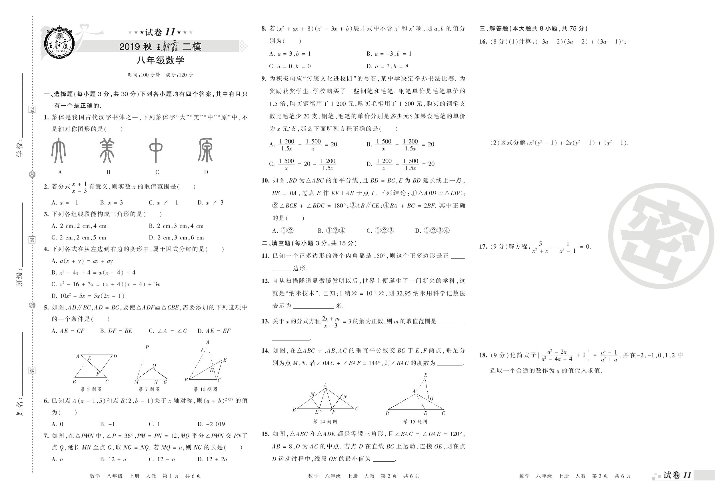 王朝霞期末模拟卷八年级上册数学(人教版)_R210806101513【11】