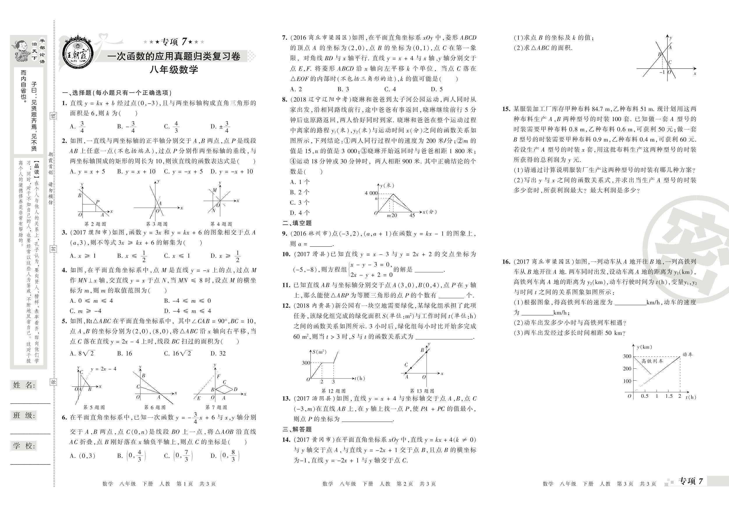 王朝霞期末专项卷——一次函数的应用、数据的分析真题归类复习卷八年级下册数学(人教版)_R210806101547【0】