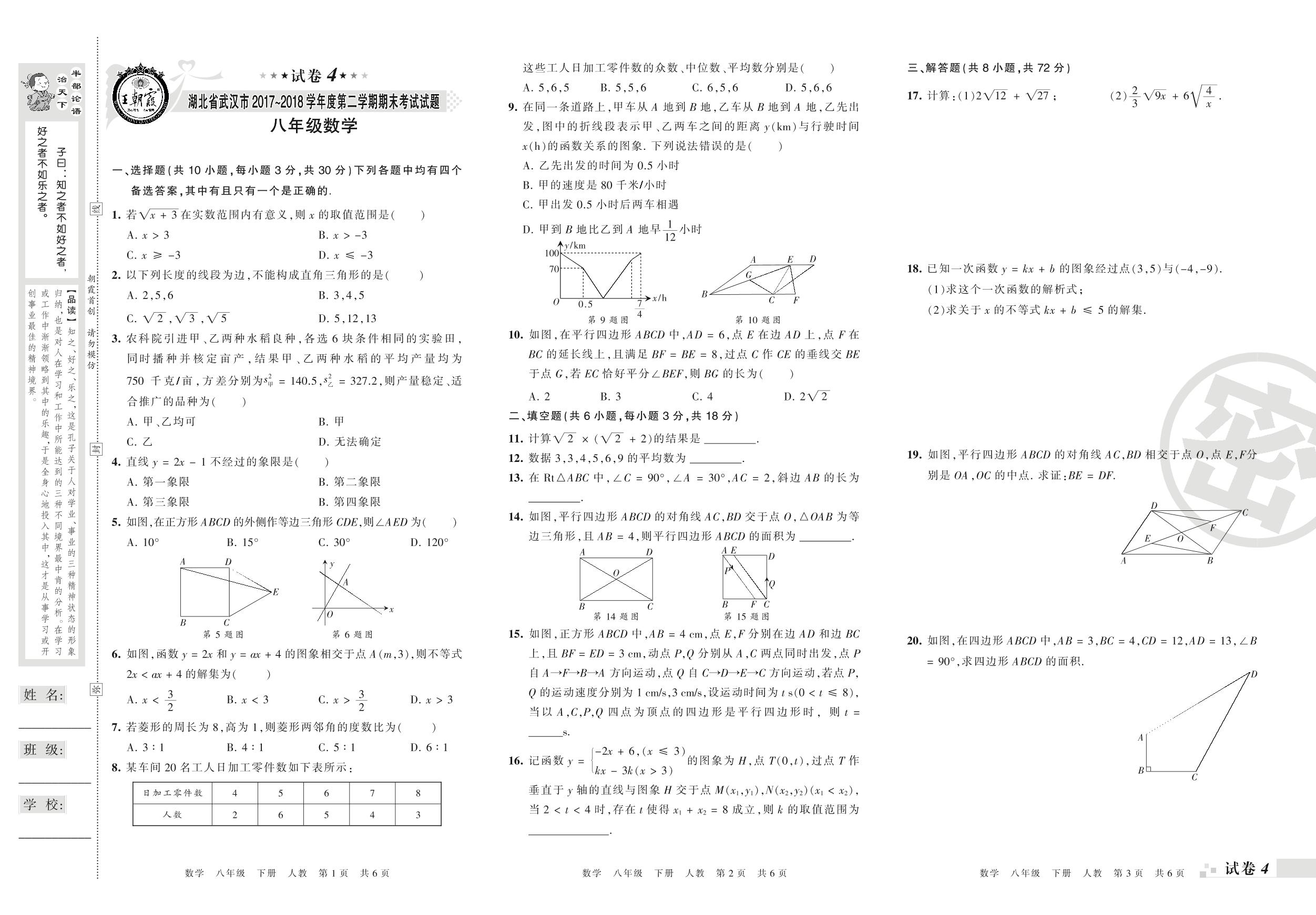 2017-2018学年第二学期湖北省武汉市八年级数学试卷(人教版)【4】