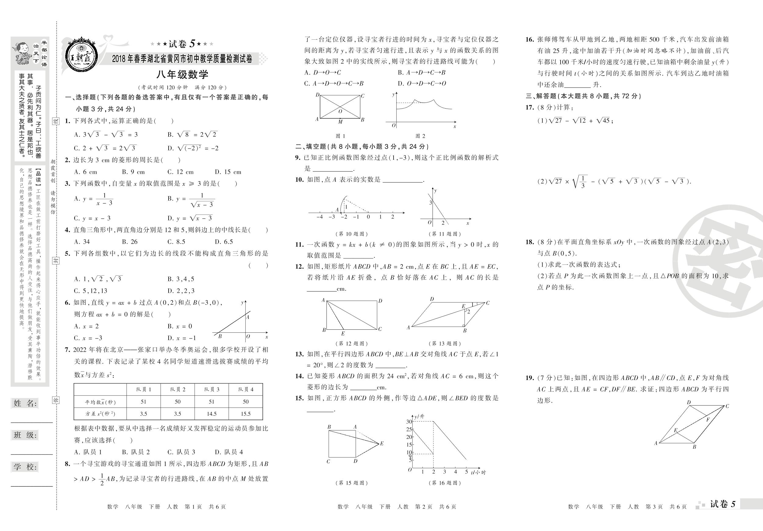 2017-2018学年第二学期湖北省黄冈市八年级数学试卷(人教版)【5】