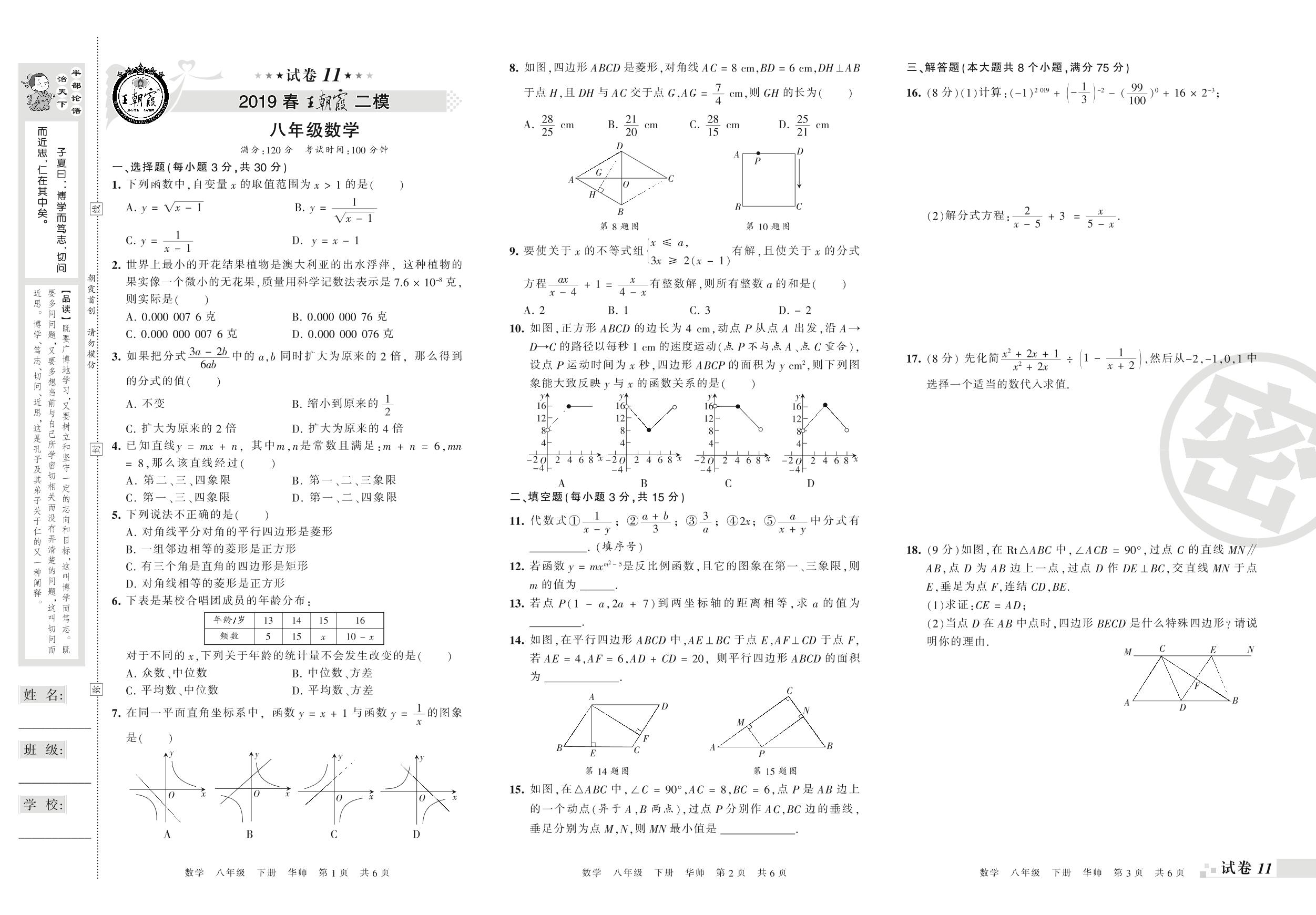 王朝霞期末模拟卷八年级下册数学(华师版)_R210806101837【11】