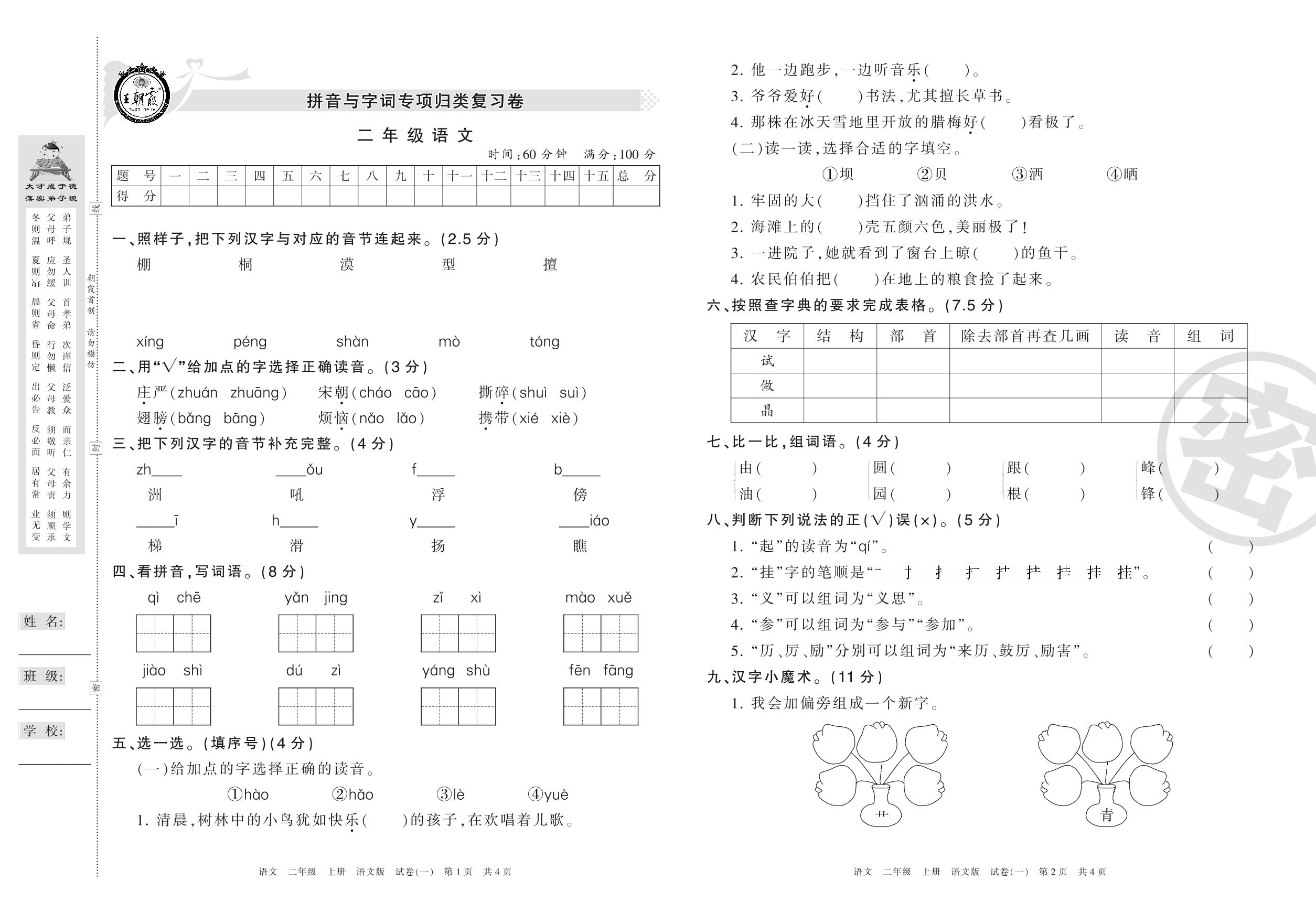 二年级语文语文版上册专项卷