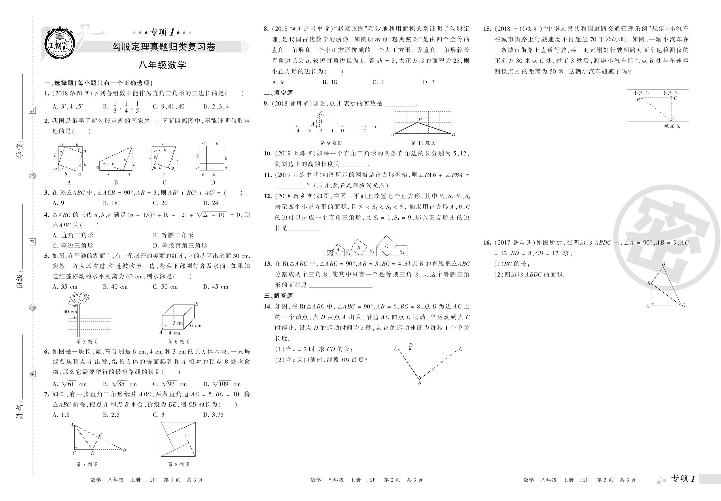 王朝霞期末专项卷——勾股定理、实数真题归类复习八年级上册数学(北师版)_R210806102104【0】