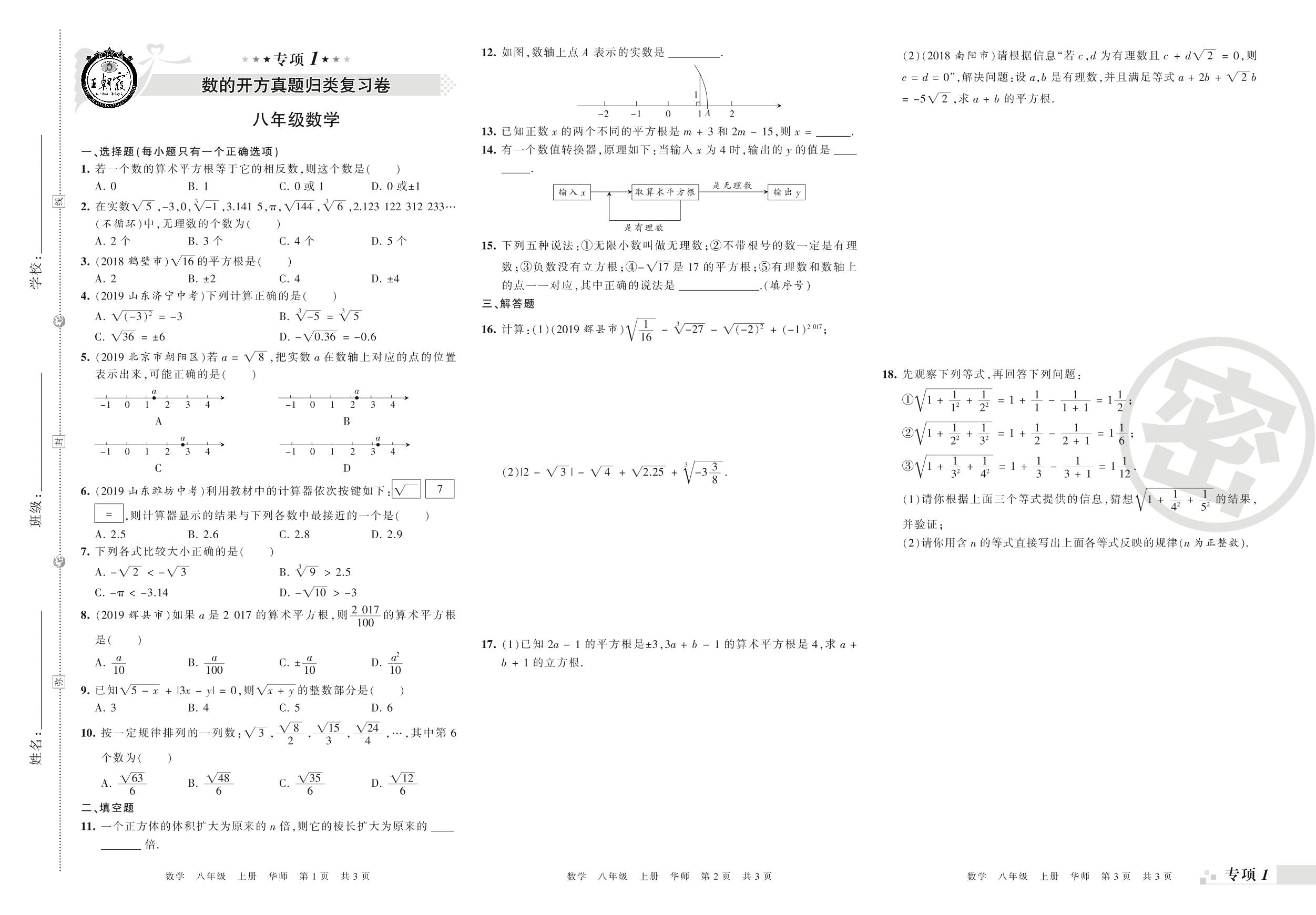 王朝霞期末专项卷——数的开方、整式的乘除真题归类复习八年级上册数学(华师版)_R210806102200【0】