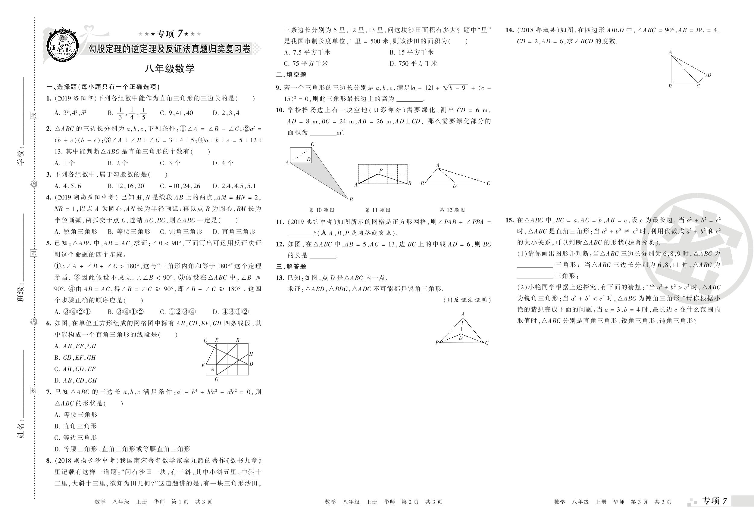王朝霞期末专项卷——勾股定理的逆定理及反证法、数据的收集与表示真题归类复习八年级上册数学(华师版)_R210806102213【0】