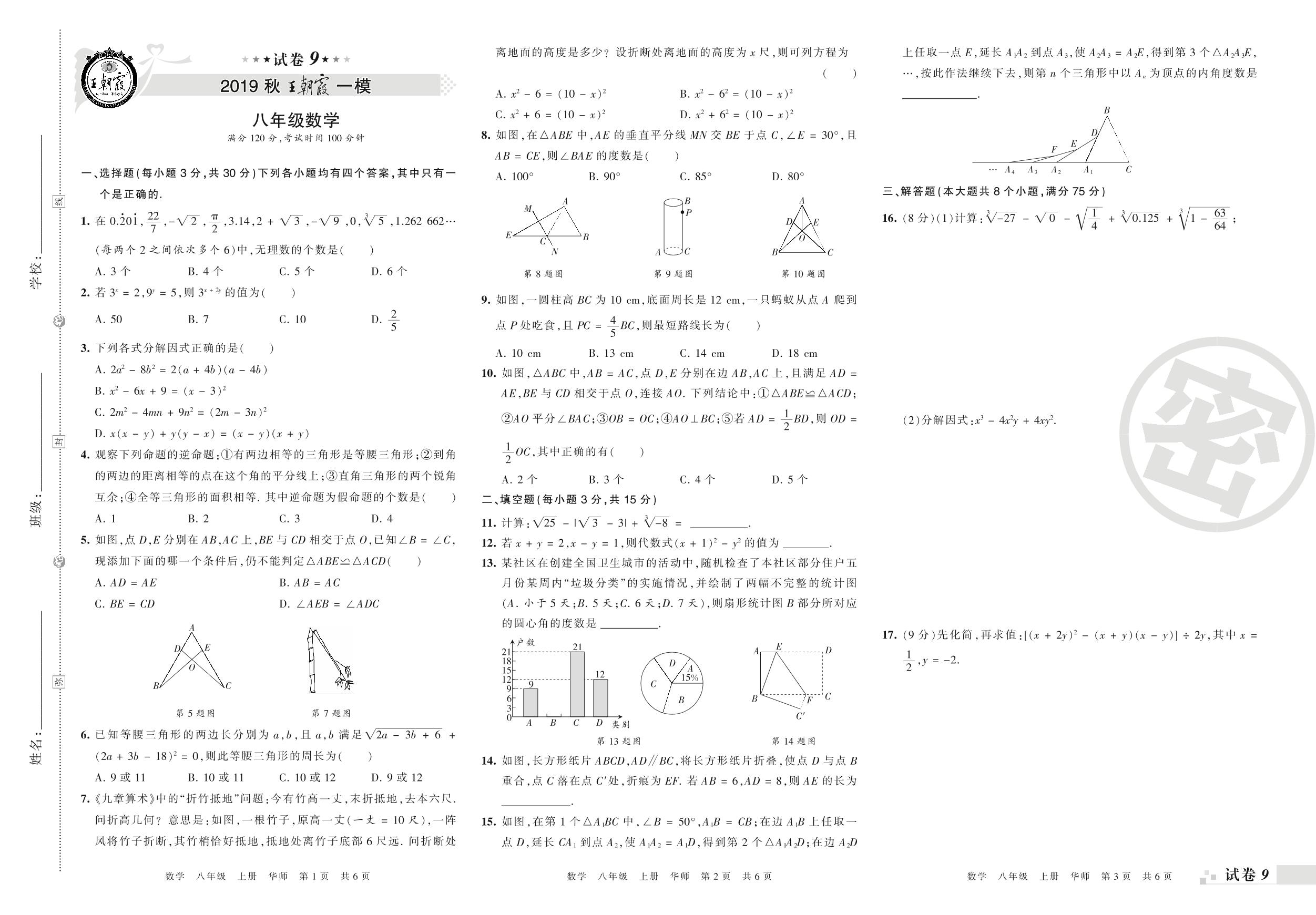 王朝霞期末模拟卷八年级上册数学(华师版)_R210806102251【9】