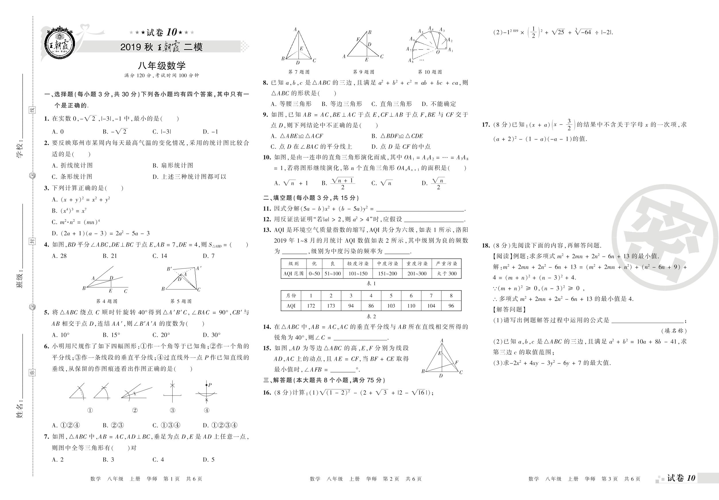 王朝霞期末模拟卷八年级上册数学(华师版)_R210806102256【10】
