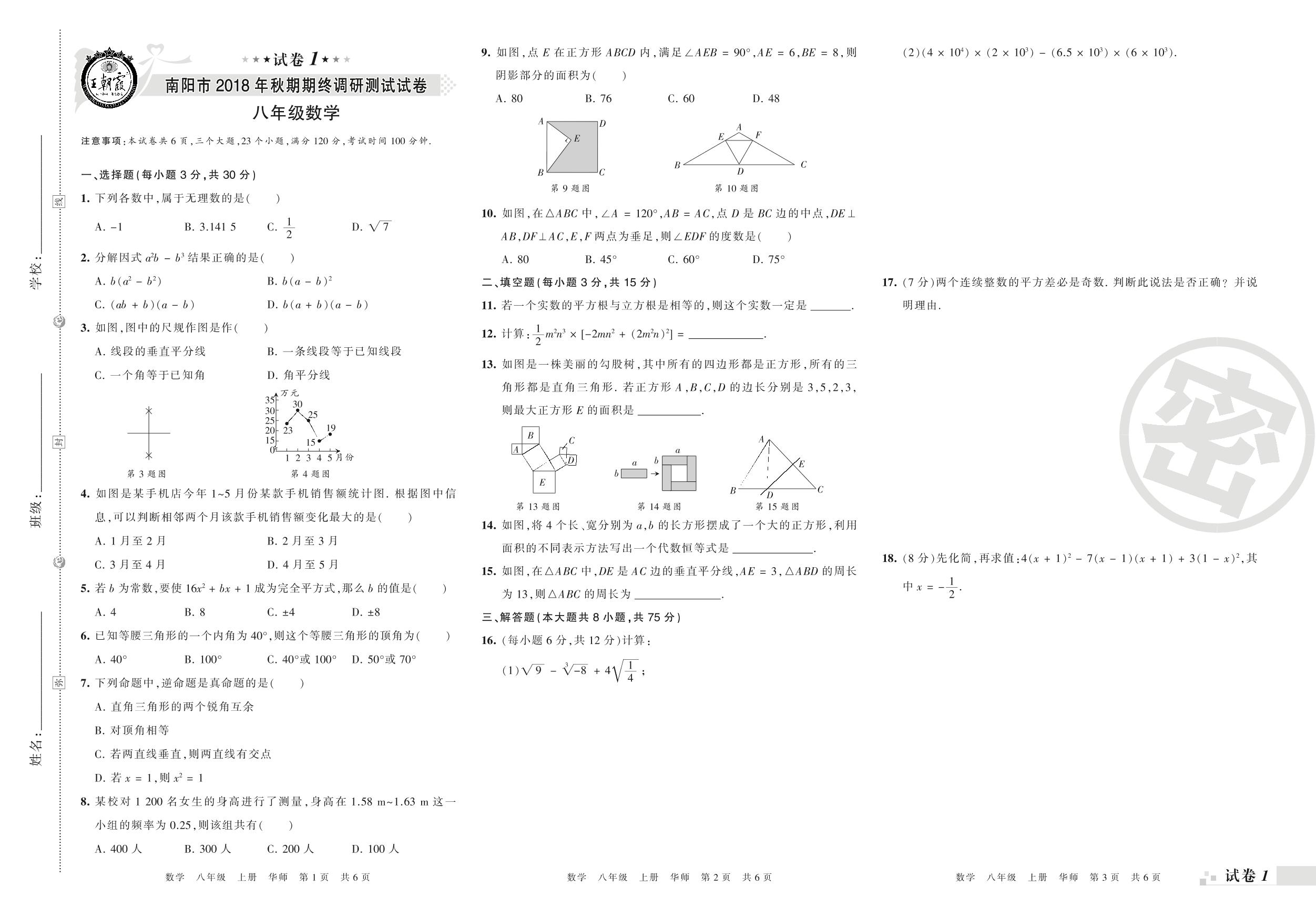 2018-2019学年第一学期南阳市八年级数学试卷(华师版)_R210806102326【1】