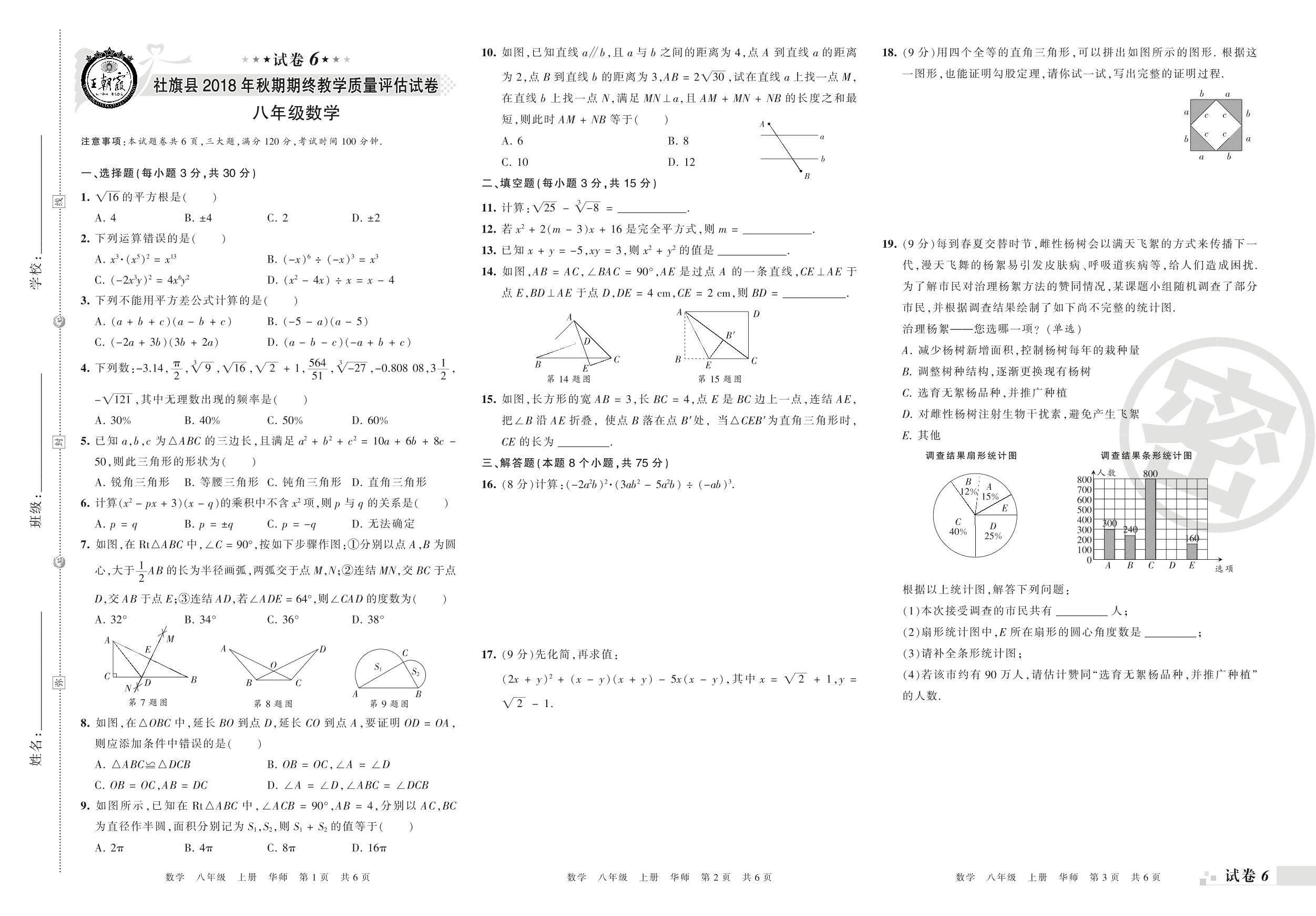 2018-2019学年第一学期南阳市社旗县八年级数学试卷(华师版)【6】