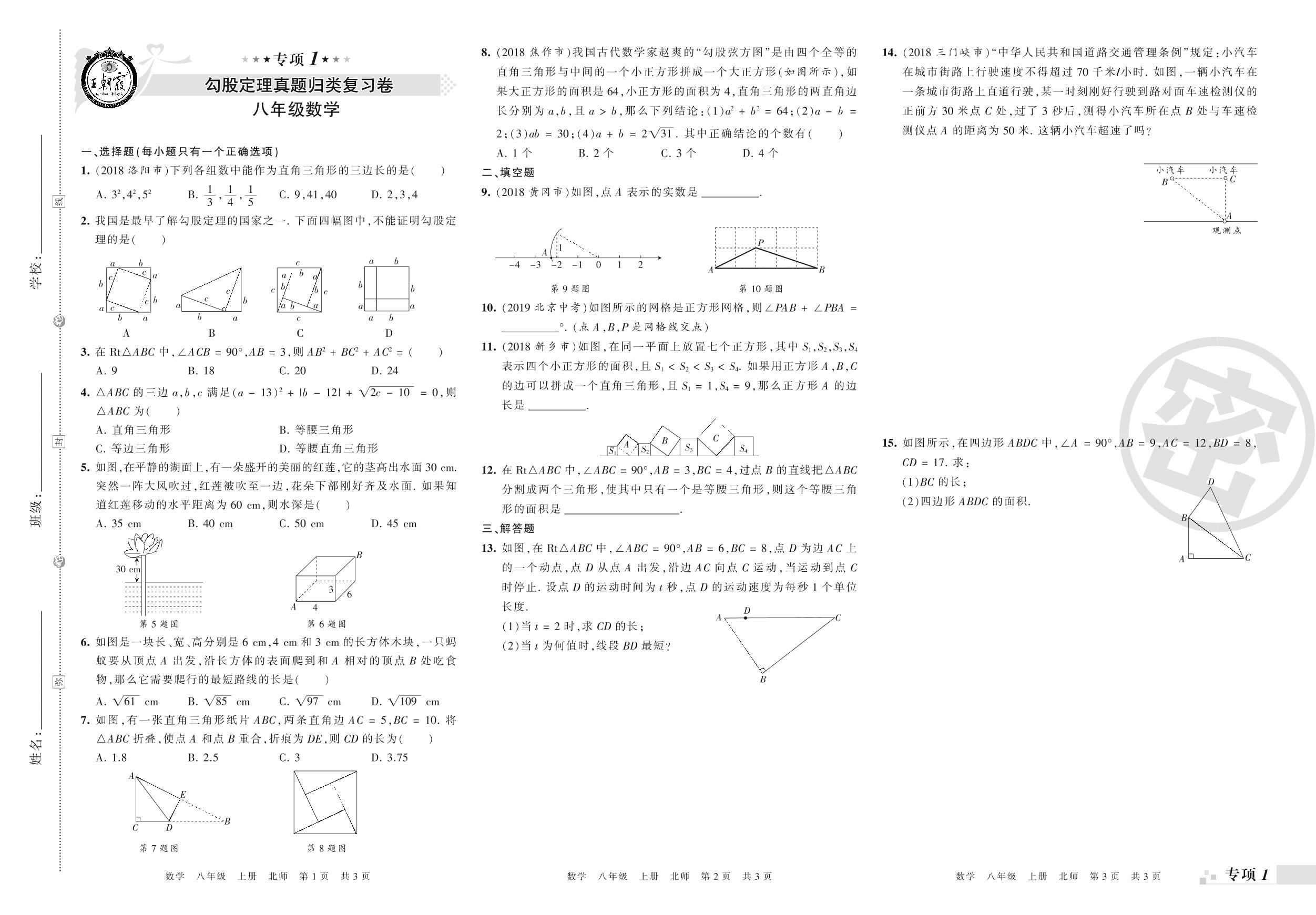 王朝霞期末专项卷——勾股定理、实数真题归类复习八年级上册数学(北师版)_R210806102420【0】