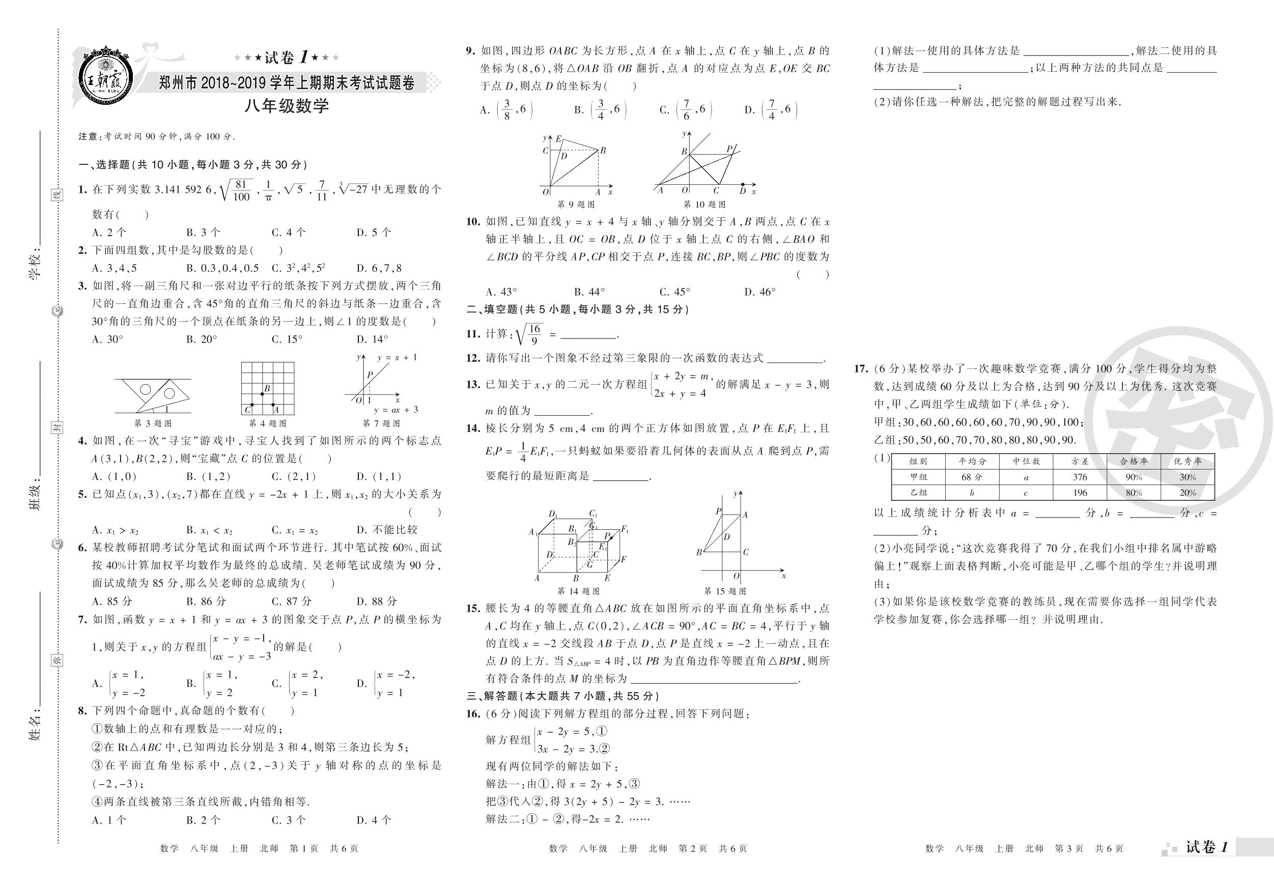 2018-2019学年第一学期郑州市八年级数学试卷(北师版)【1】