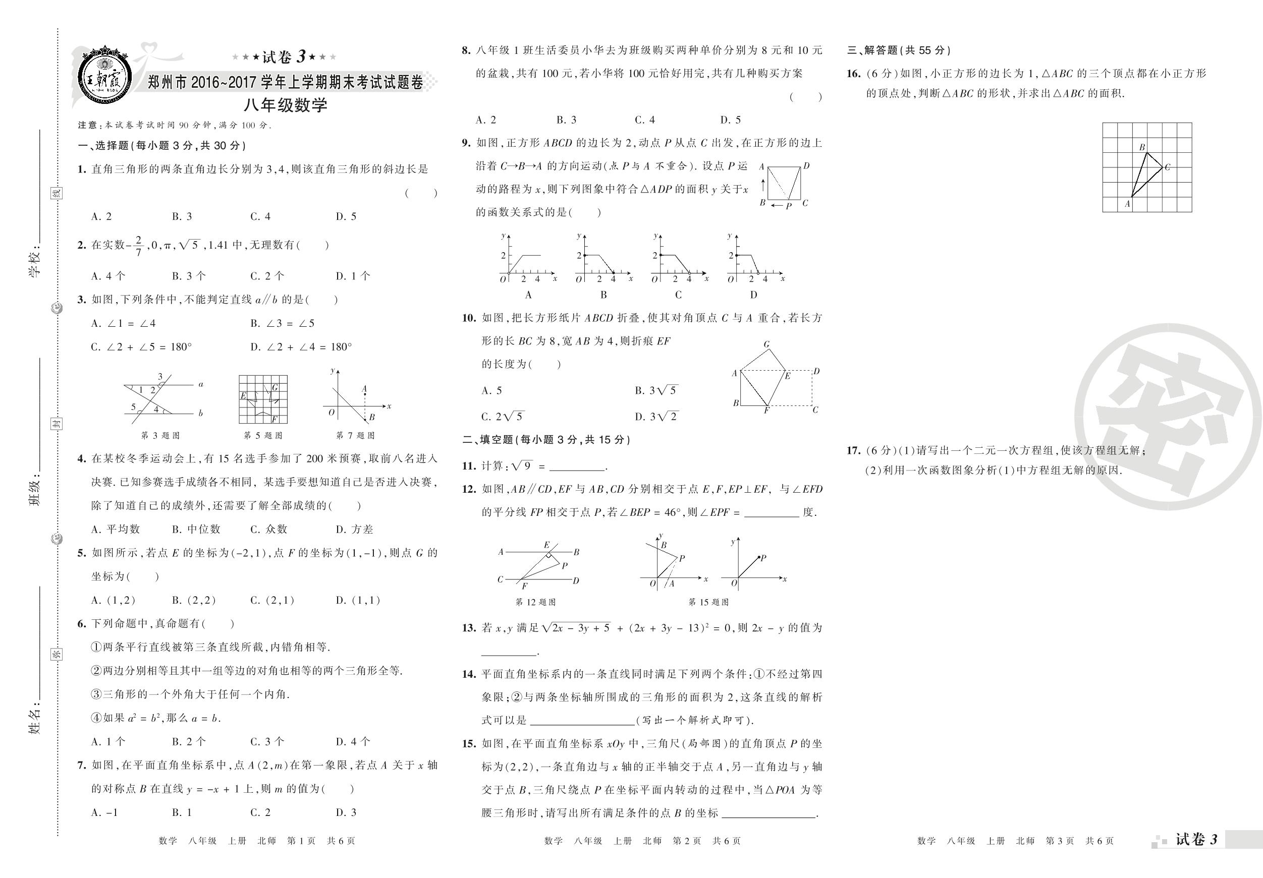 2016-2017学年第一学期郑州市八年级数学试卷(北师版)【3】