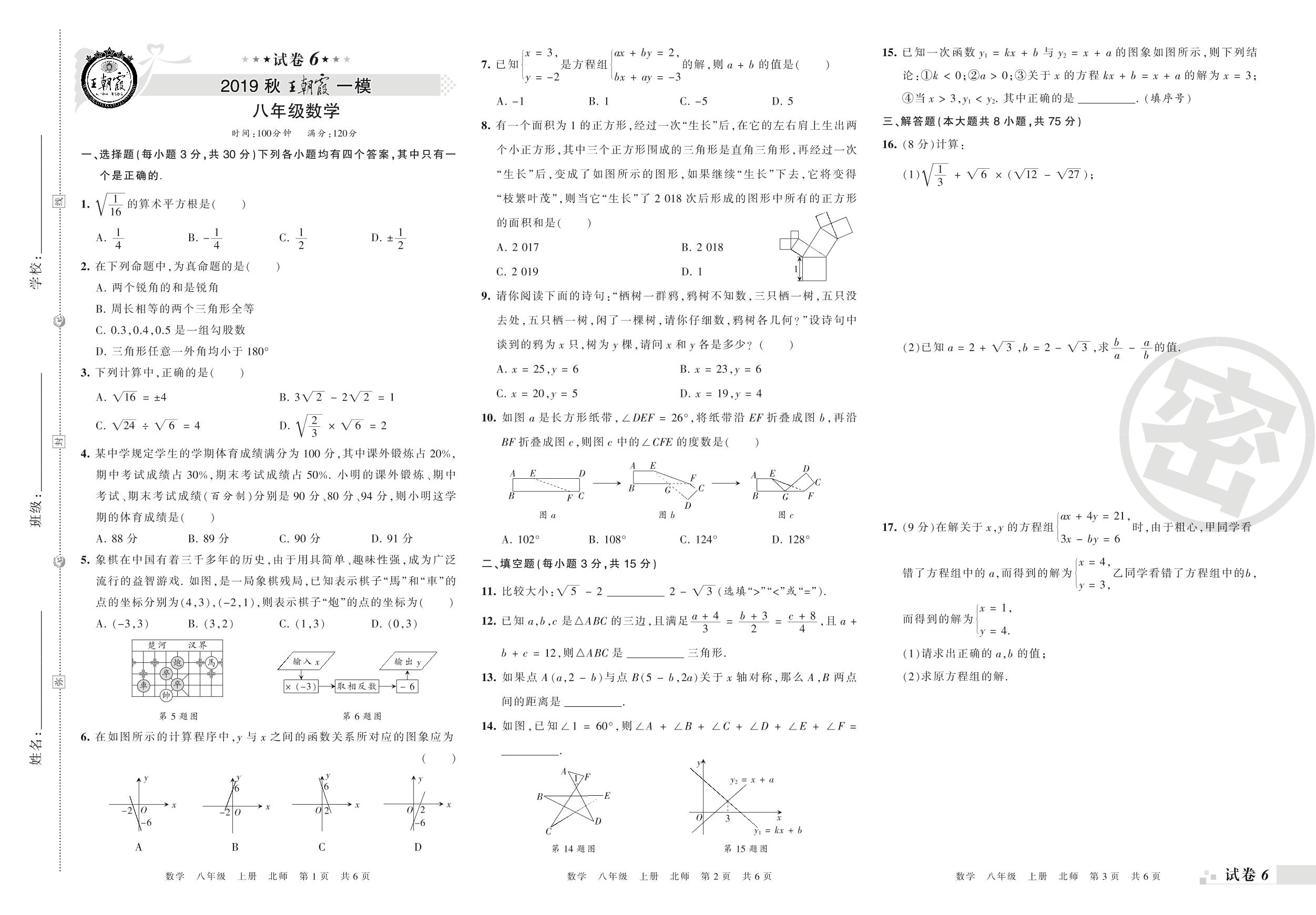 王朝霞期末模拟卷八年级上册数学(北师版)_R210806102513【6】