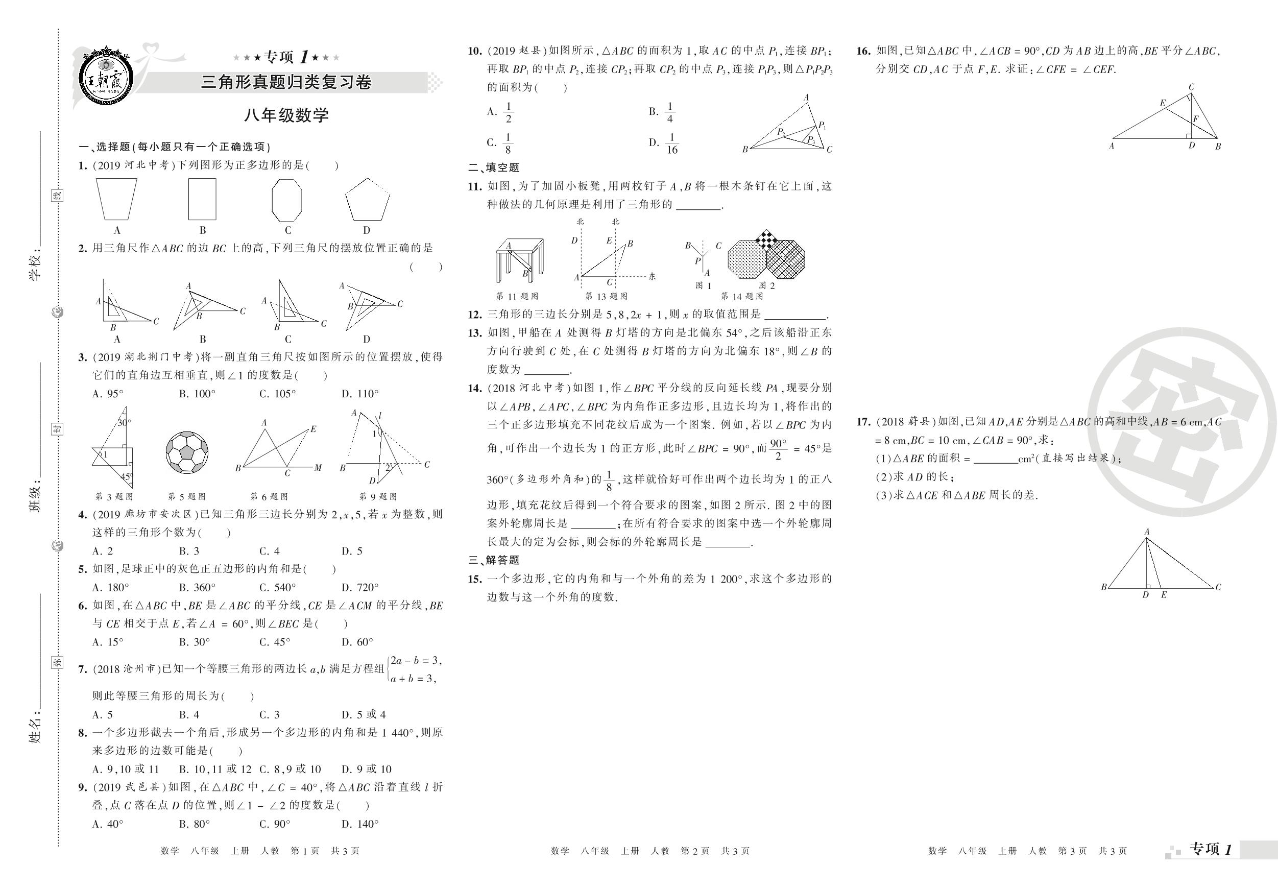 王朝霞期末专项卷——三角形、全等三角形真题归类复习八年级上册数学(人教版)_R210806102558【0】