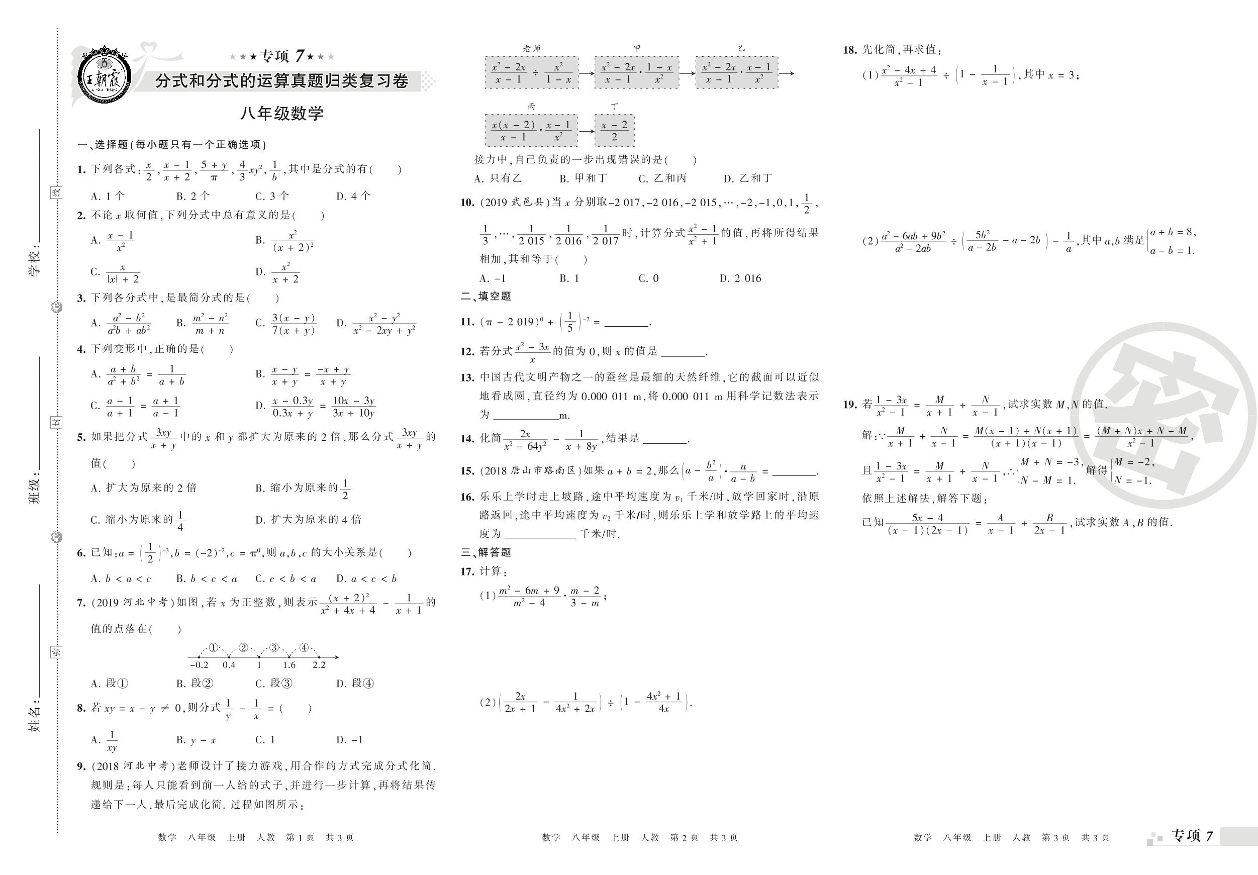 王朝霞期末专项卷——分式和分式的运算、分式方程真题归类复习八年级上册数学(人教版)_R210806102611【0】