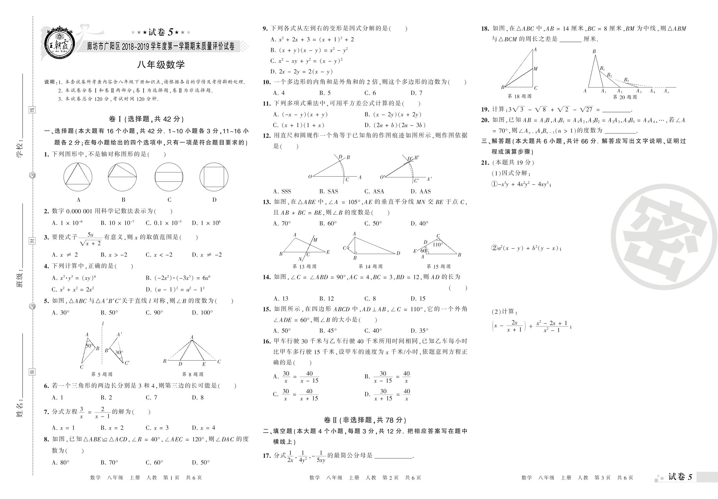 2018-2019学年第一学期廊坊市广阳区八年级数学试卷(人教版)【5】