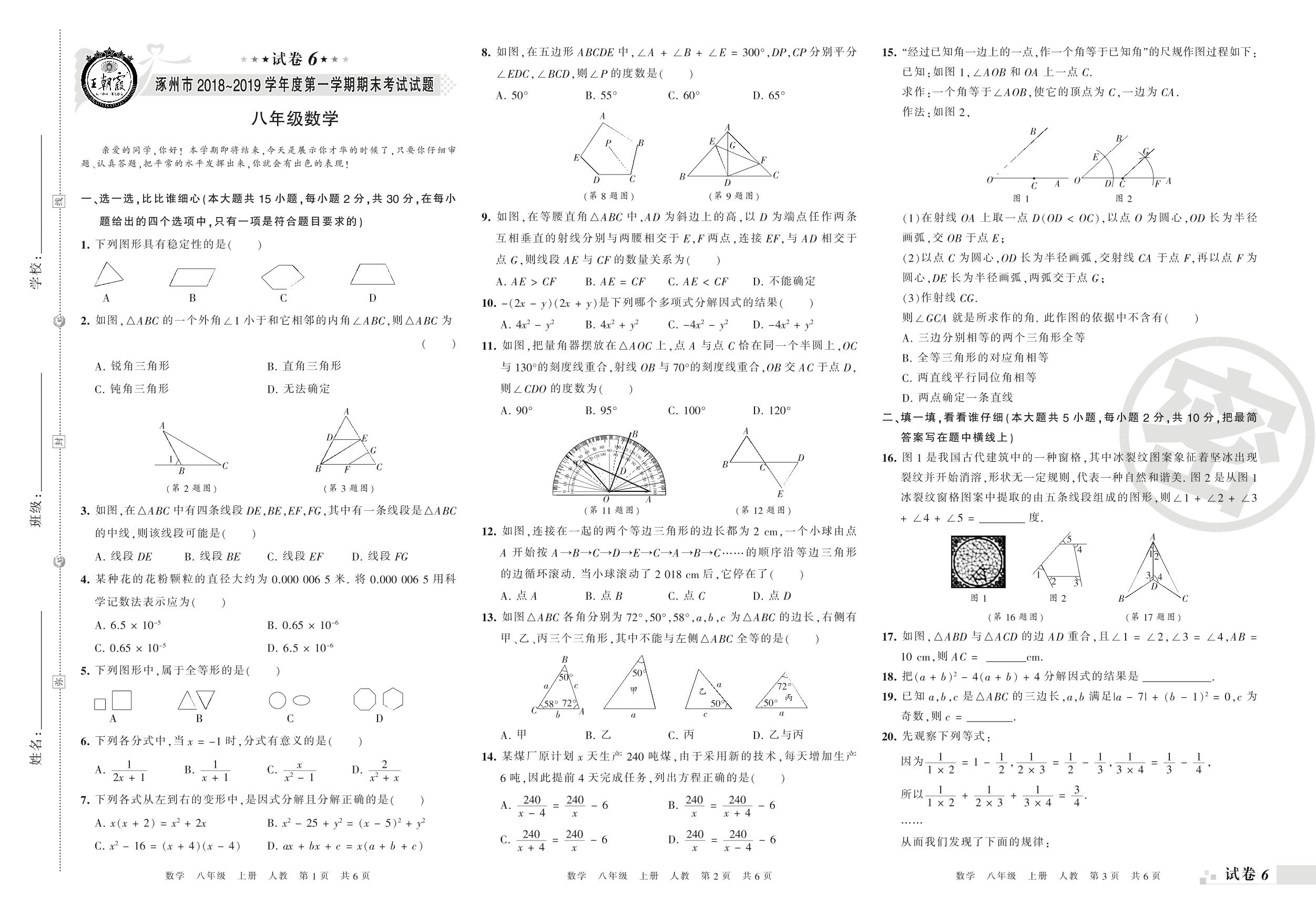2018-2019学年第一学期涿州市八年级数学试卷(人教版)【6】
