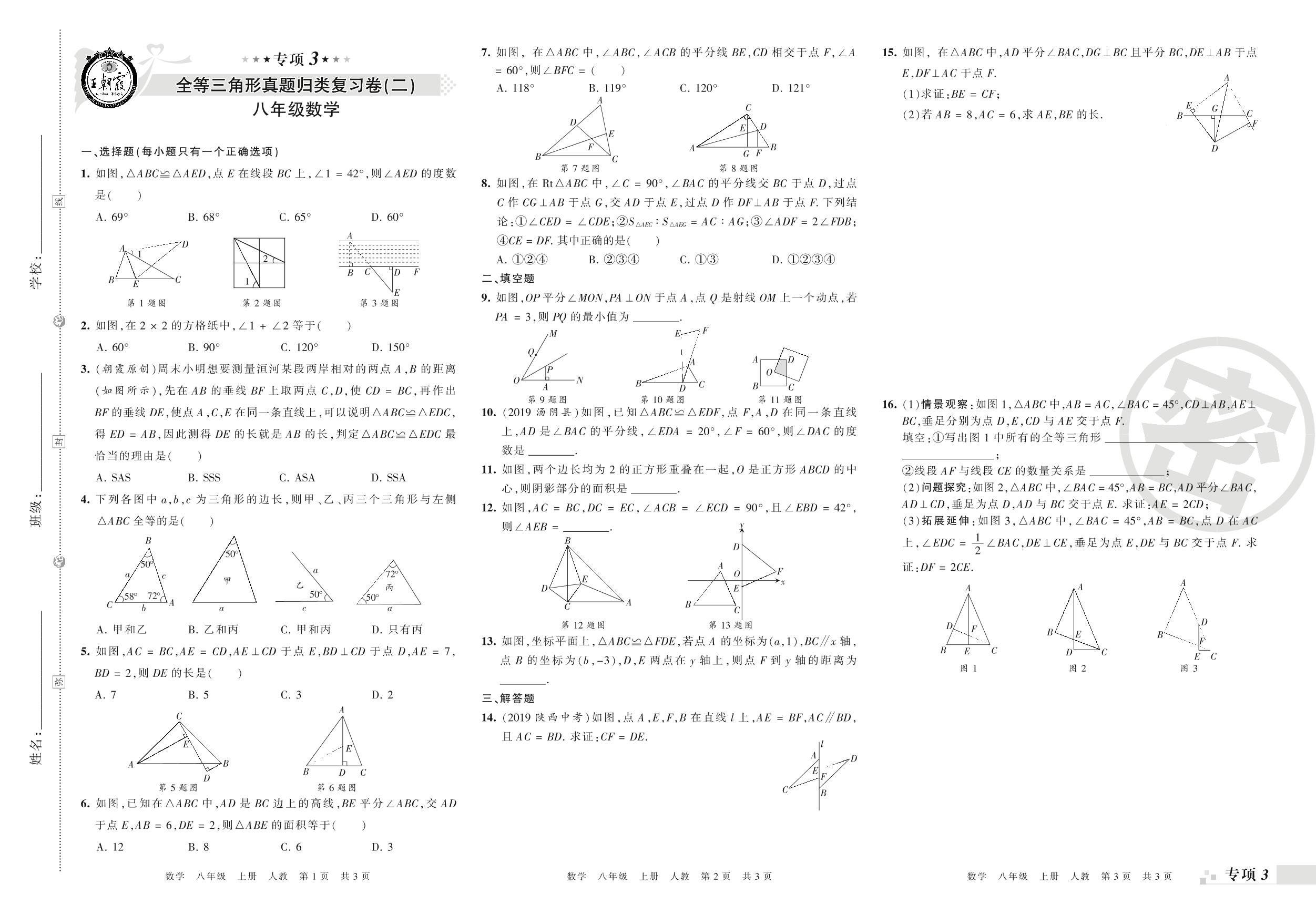 王朝霞期末专项卷——全等三角形、轴对称真题归类复习八年级上册数学(人教版)_R210806102738【0】