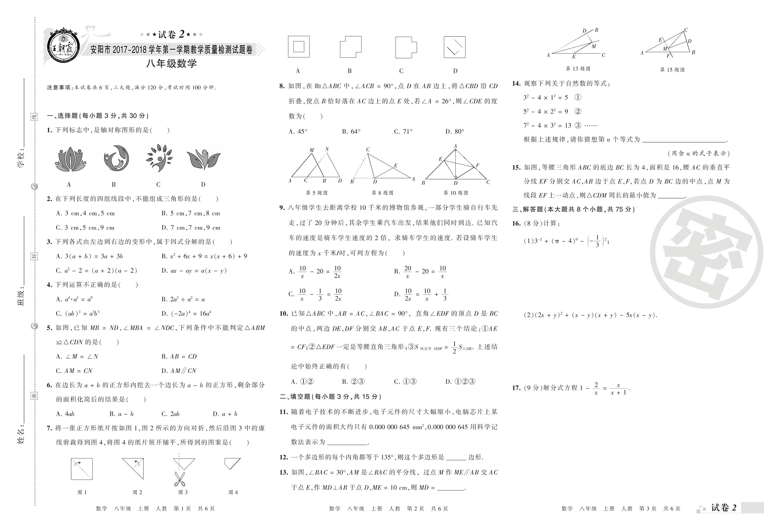 2017-2018学年第一学期安阳市八年级数学试卷(人教版)_R210806102825【2】