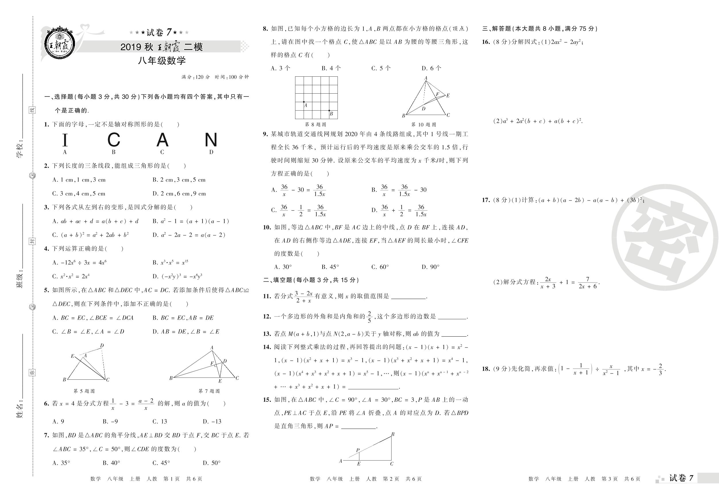 王朝霞期末模拟卷八年级上册数学(人教版)_R210806102920【7】