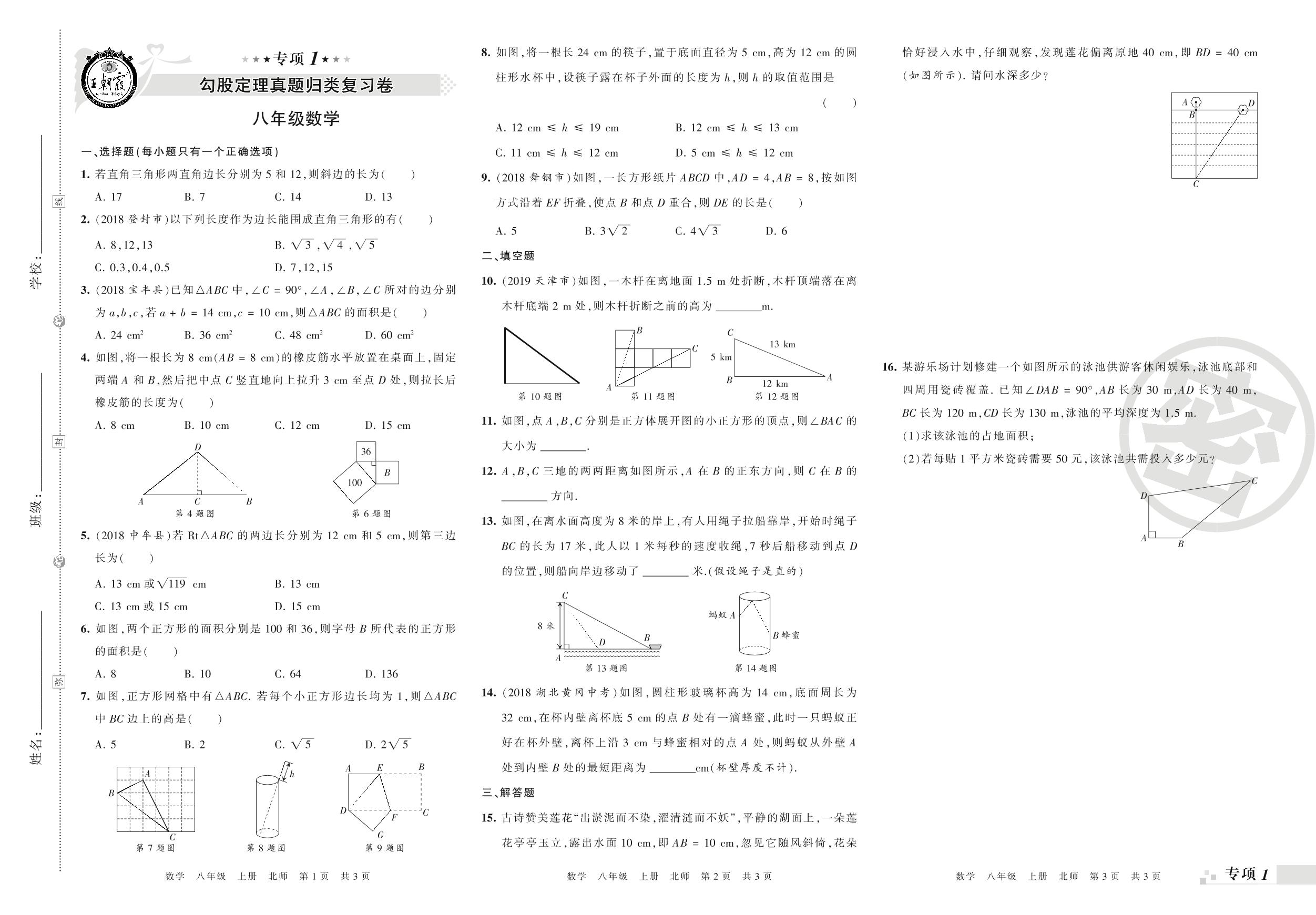 王朝霞期末专项卷——勾股定理、实数真题归类复习八年级上册数学(北师版)_R210806102932【0】