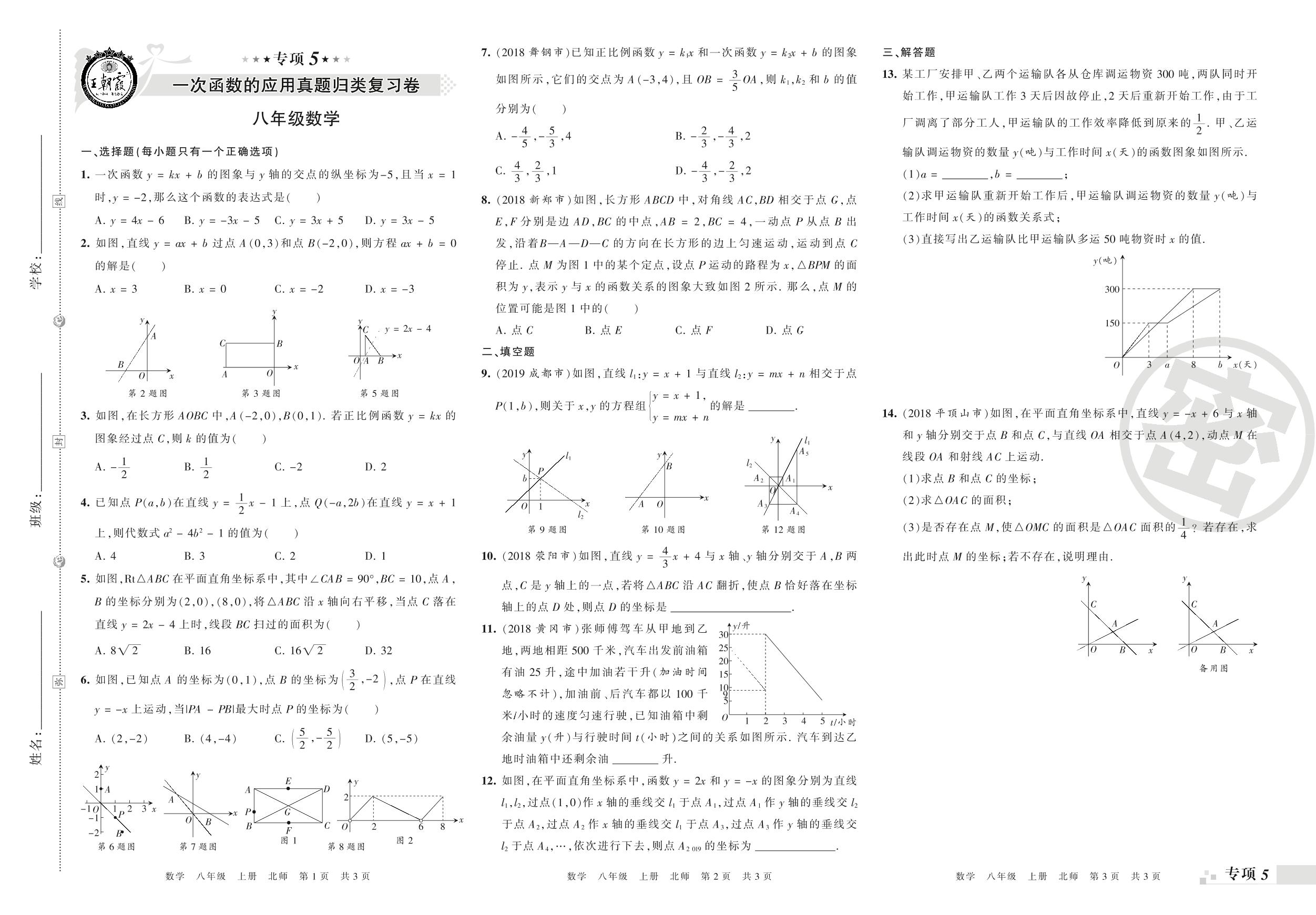 王朝霞期末专项卷——一次函数的应用、二元一次方程组真题归类复习八年级上册数学(北师版)_R210806102943【0】