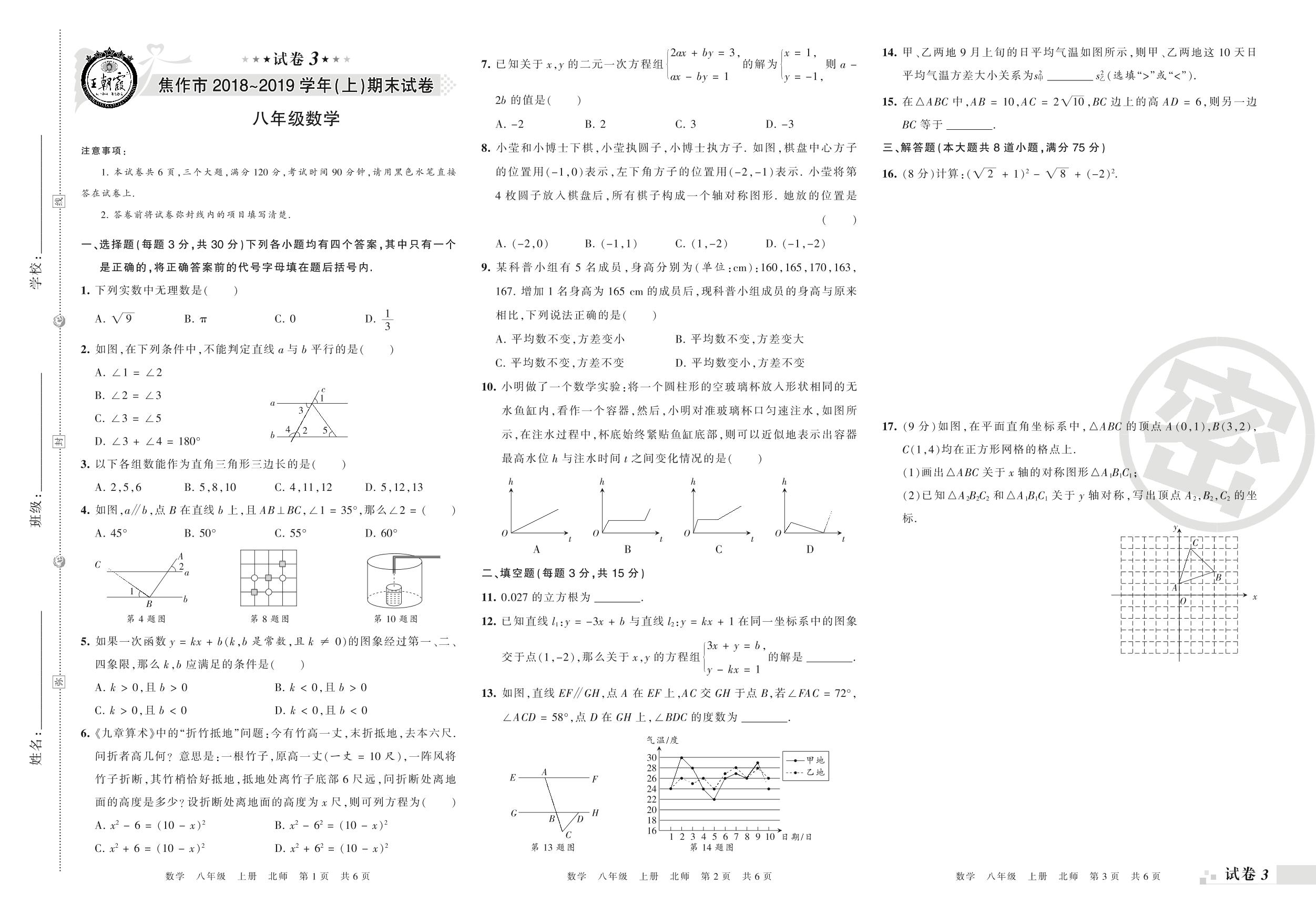 2018-2019学年第一学期焦作市八年级数学试卷(北师版)【3】