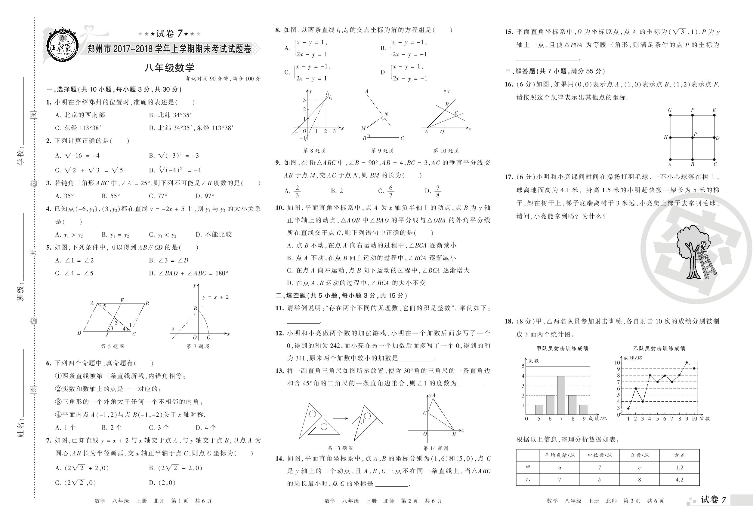 2017-2018学年第一学期郑州市八年级数学试卷(北师版)【7】