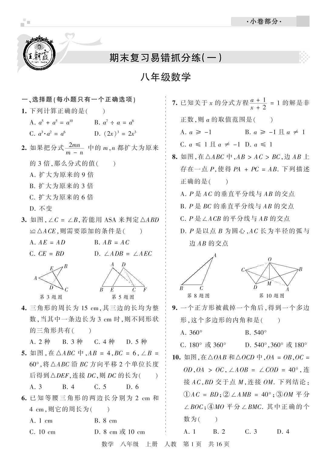 王朝霞期末小卷——期末复习易错抓分练八年级上册数学(人教版)_R210806103133【0】