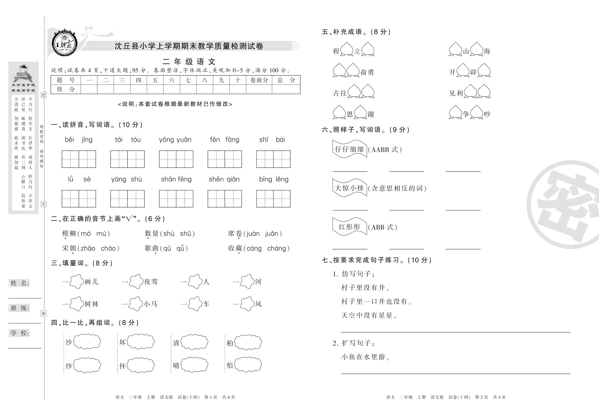 2016-2017学年第一学期周口市沈丘县二年级语文试卷(语文版)【14】