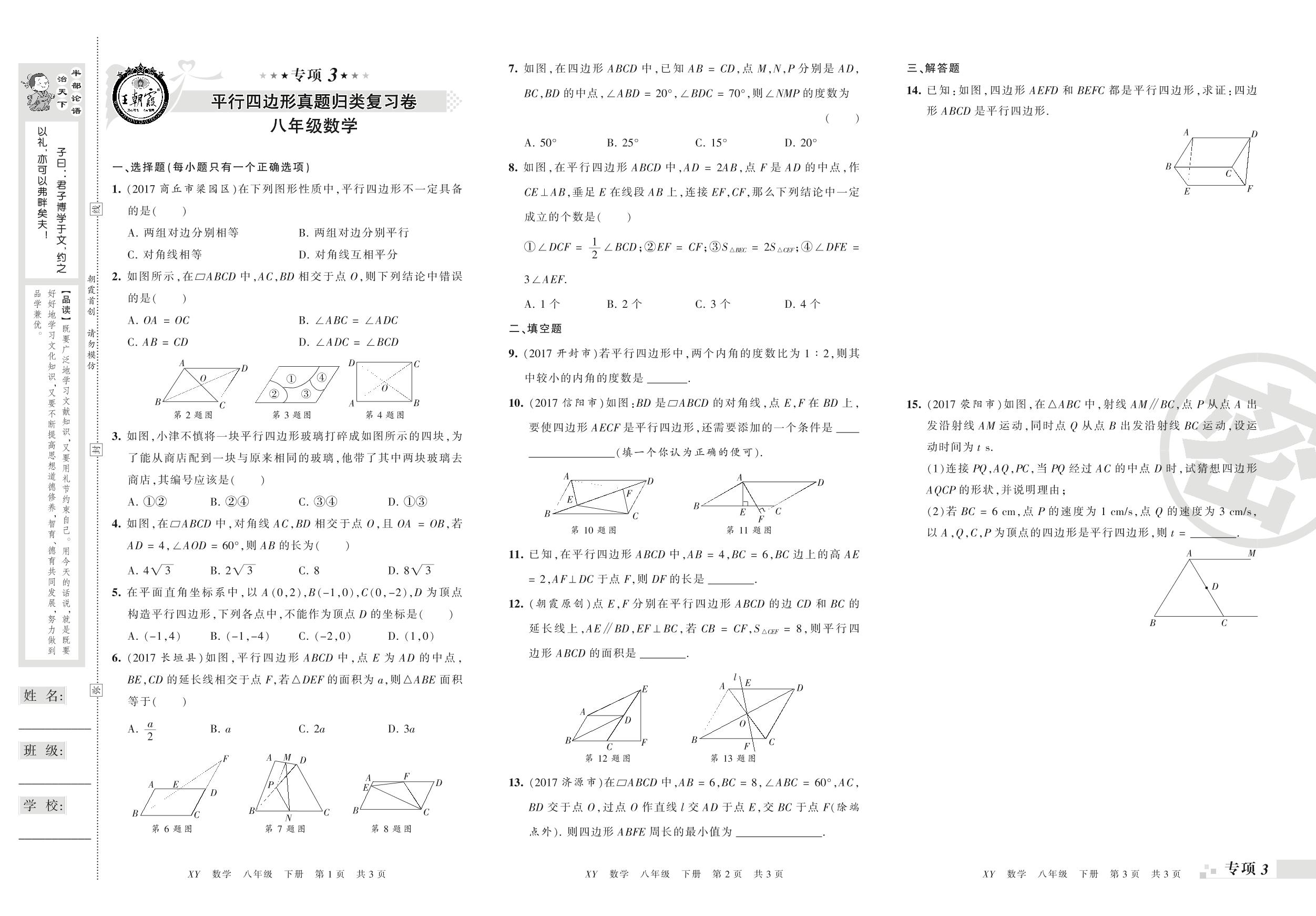 王朝霞期末专项卷——平行四边形、特殊的平行四边形(一)真题归类复习卷八年级下册数学(人教版)_R210806103307【0】