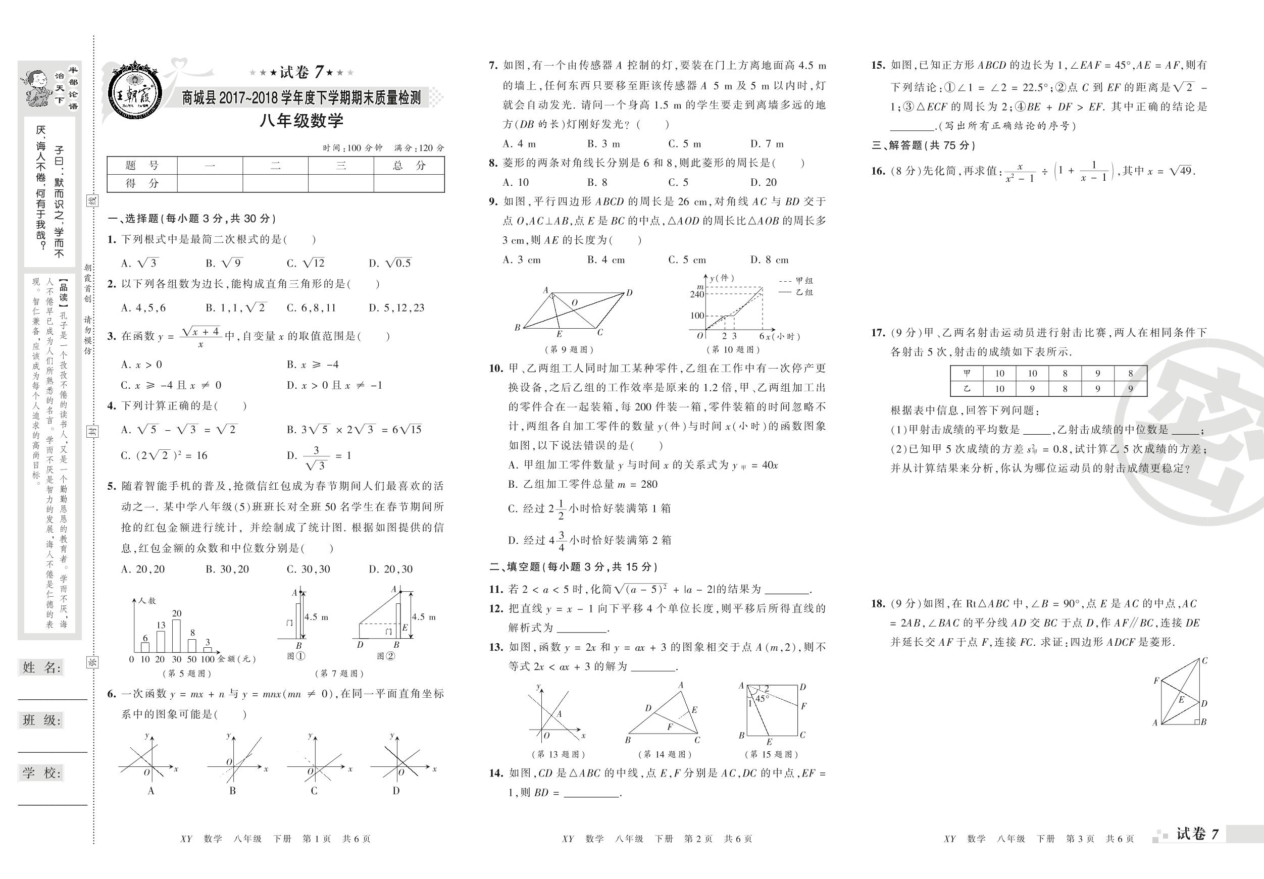 2017-2018学年第二学期信阳市商城县八年级数学试卷(人教版)【7】