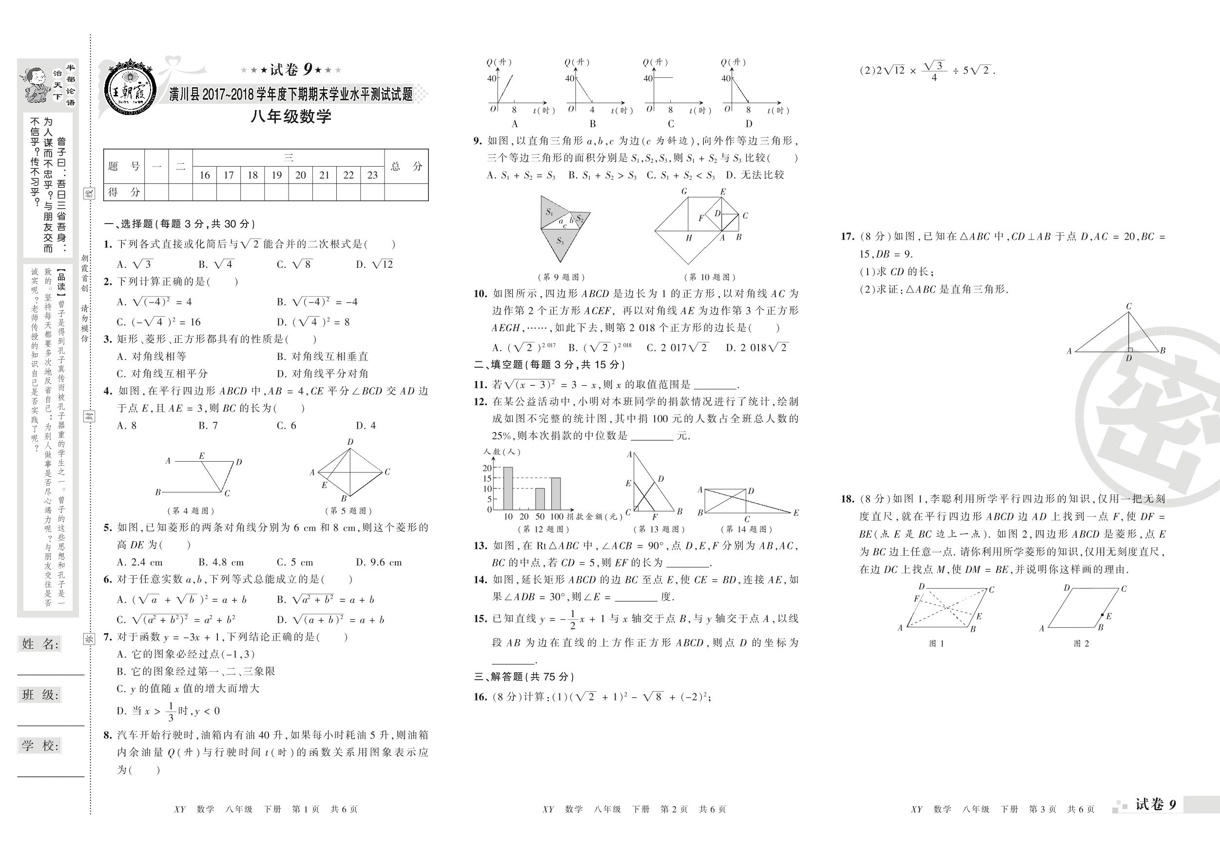 2017-2018学年第二学期信阳市潢川县八年级数学试卷(人教版)【9】