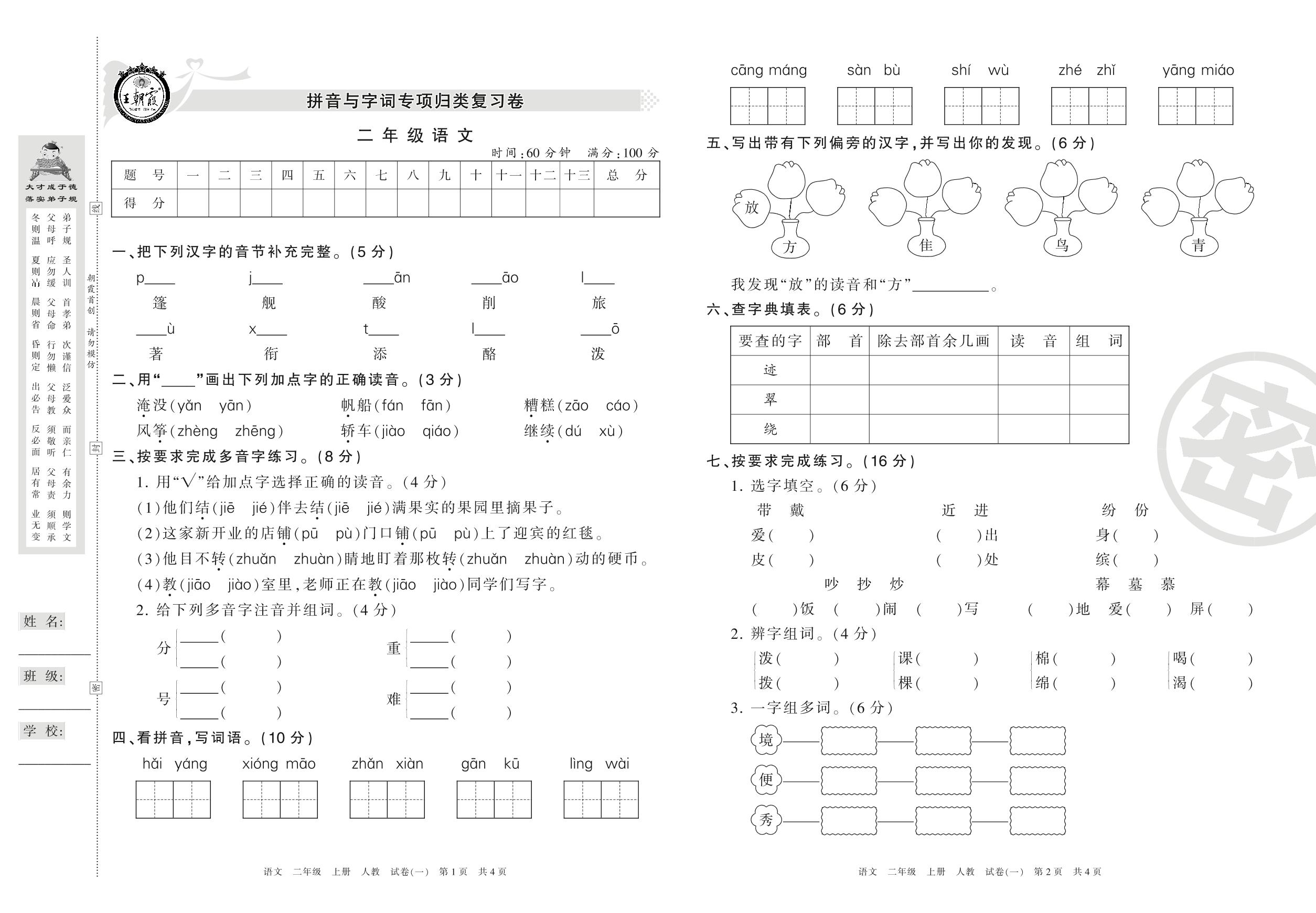 王朝霞期末专项卷二年级上册语文(人教版)_R21080175117【1】