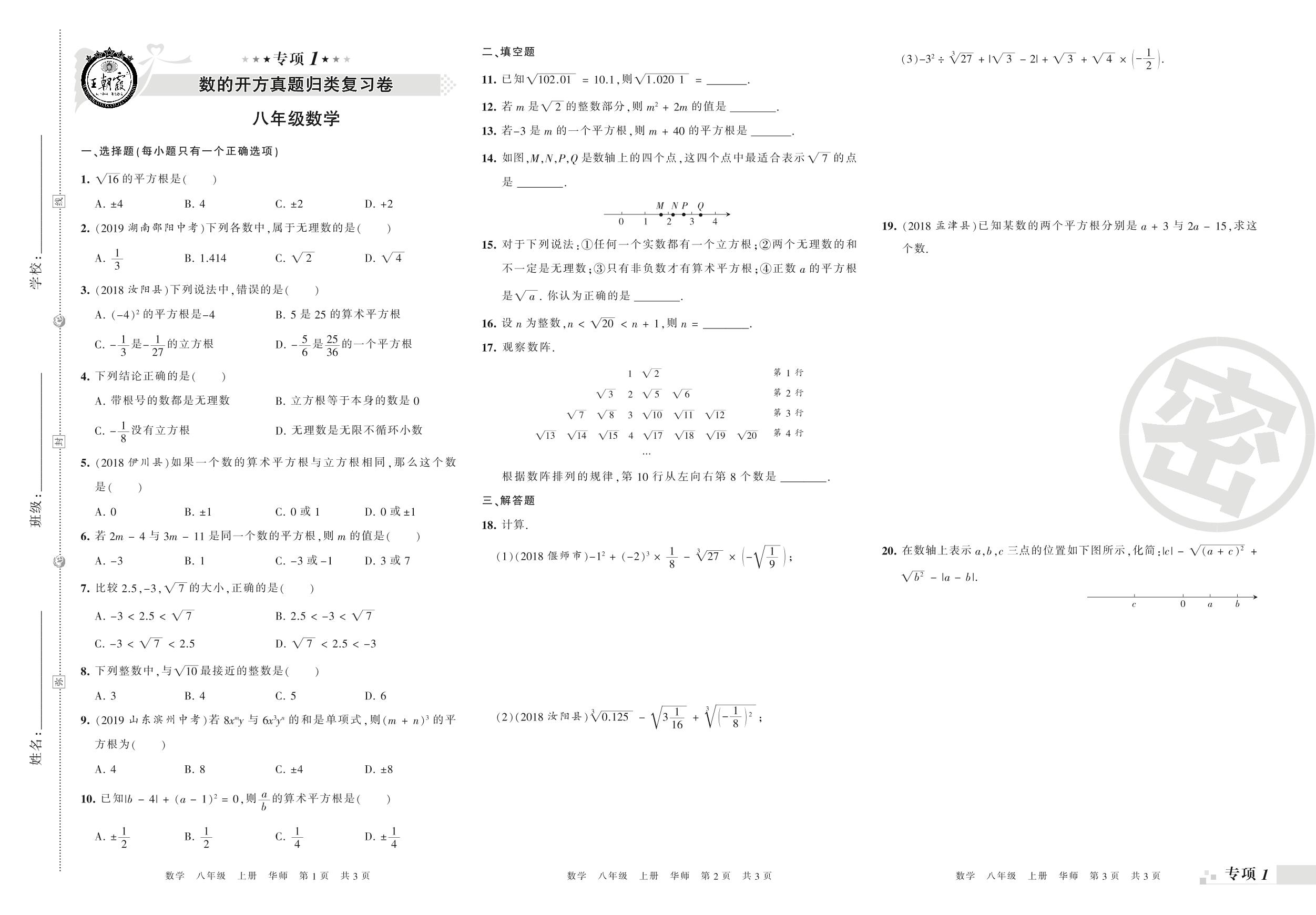 王朝霞期末专项卷——数的开方、整式的乘除真题归类复习八年级上册数学(华师版)_R210806103555【0】
