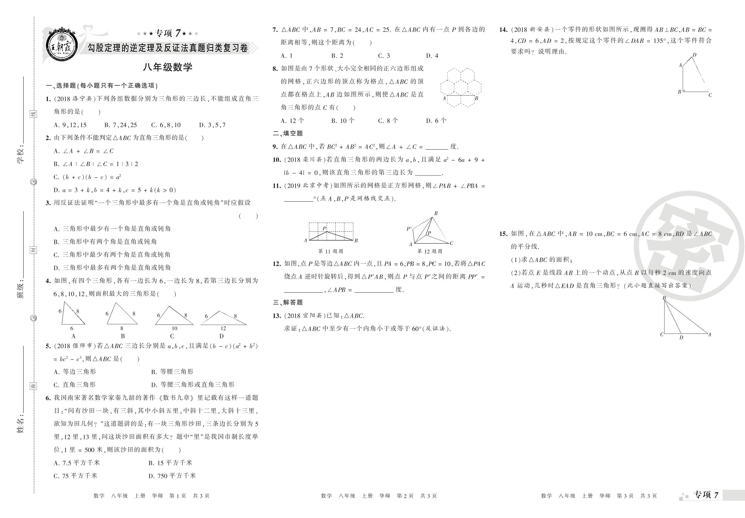 王朝霞期末专项卷——勾股定理的逆定理及反证法、数据的收集与表示真题归类复习八年级上册数学(华师版)_R210806103606【0】