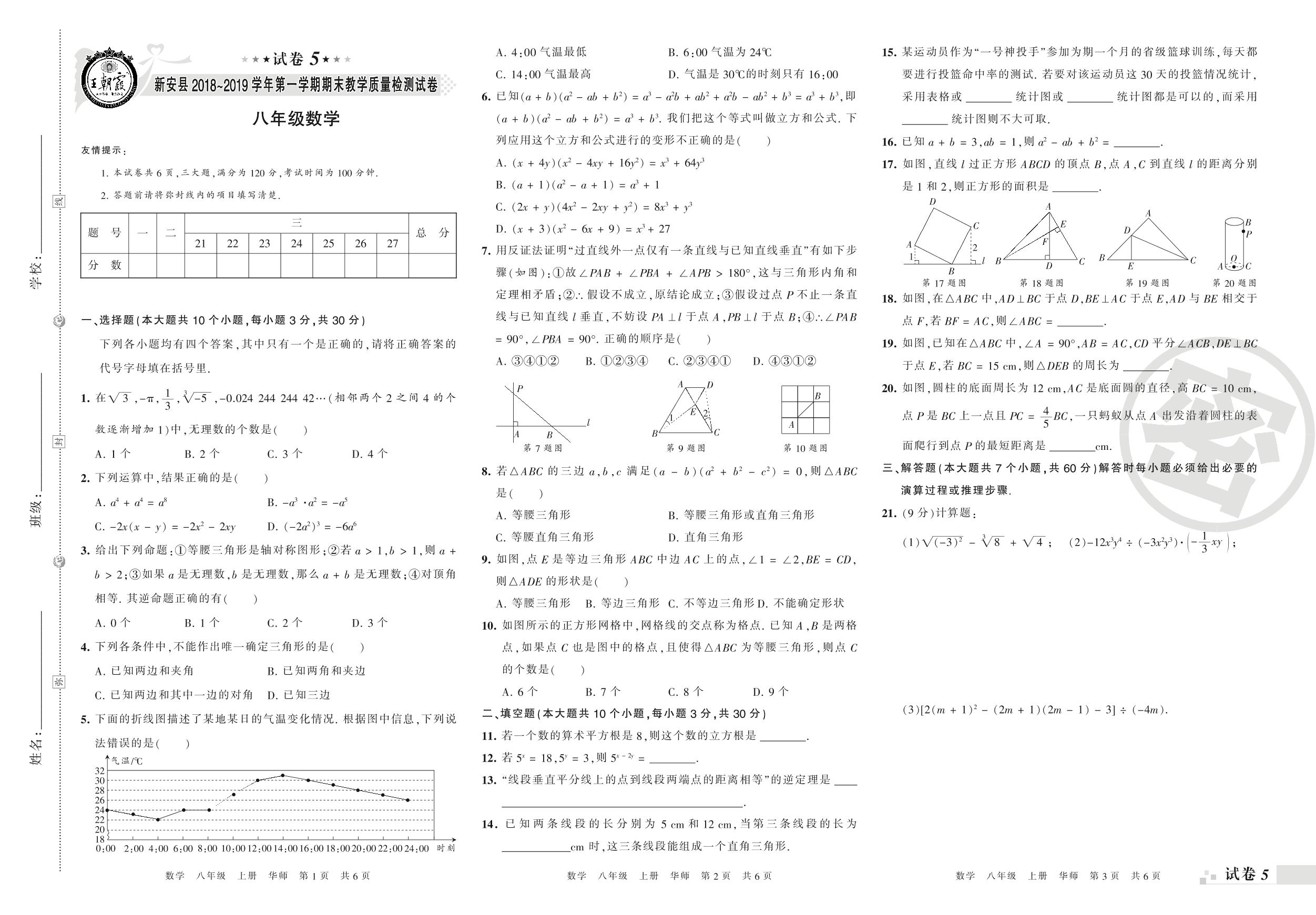 2018-2019学年第一学期洛阳市新安县八年级数学试卷(华师版)【5】