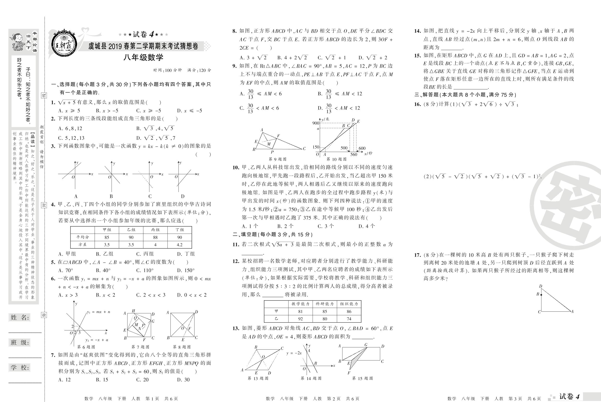 2018-2019学年第二学期商丘市虞城县猜想卷八年级数学试卷(人教版)【4】