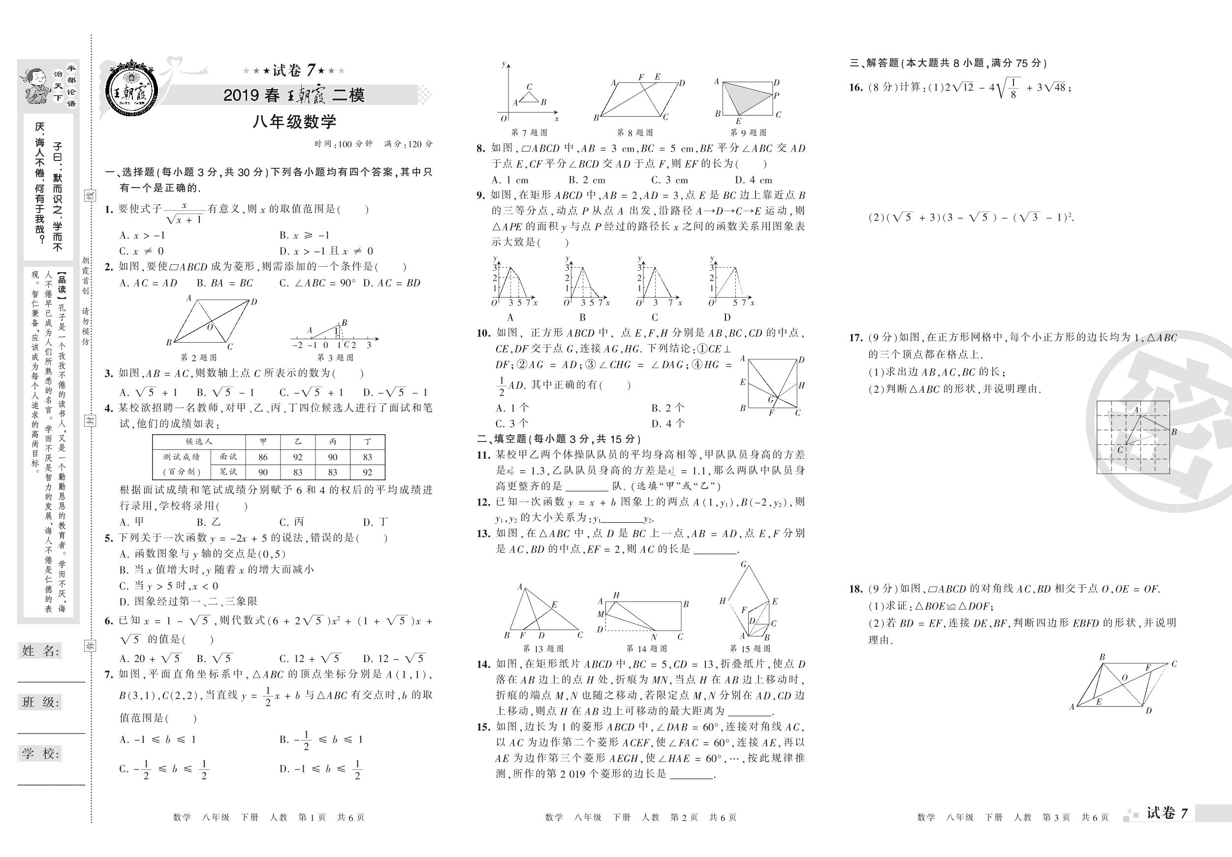 王朝霞期末模拟卷八年级下册数学(人教版)_R210806103802【7】