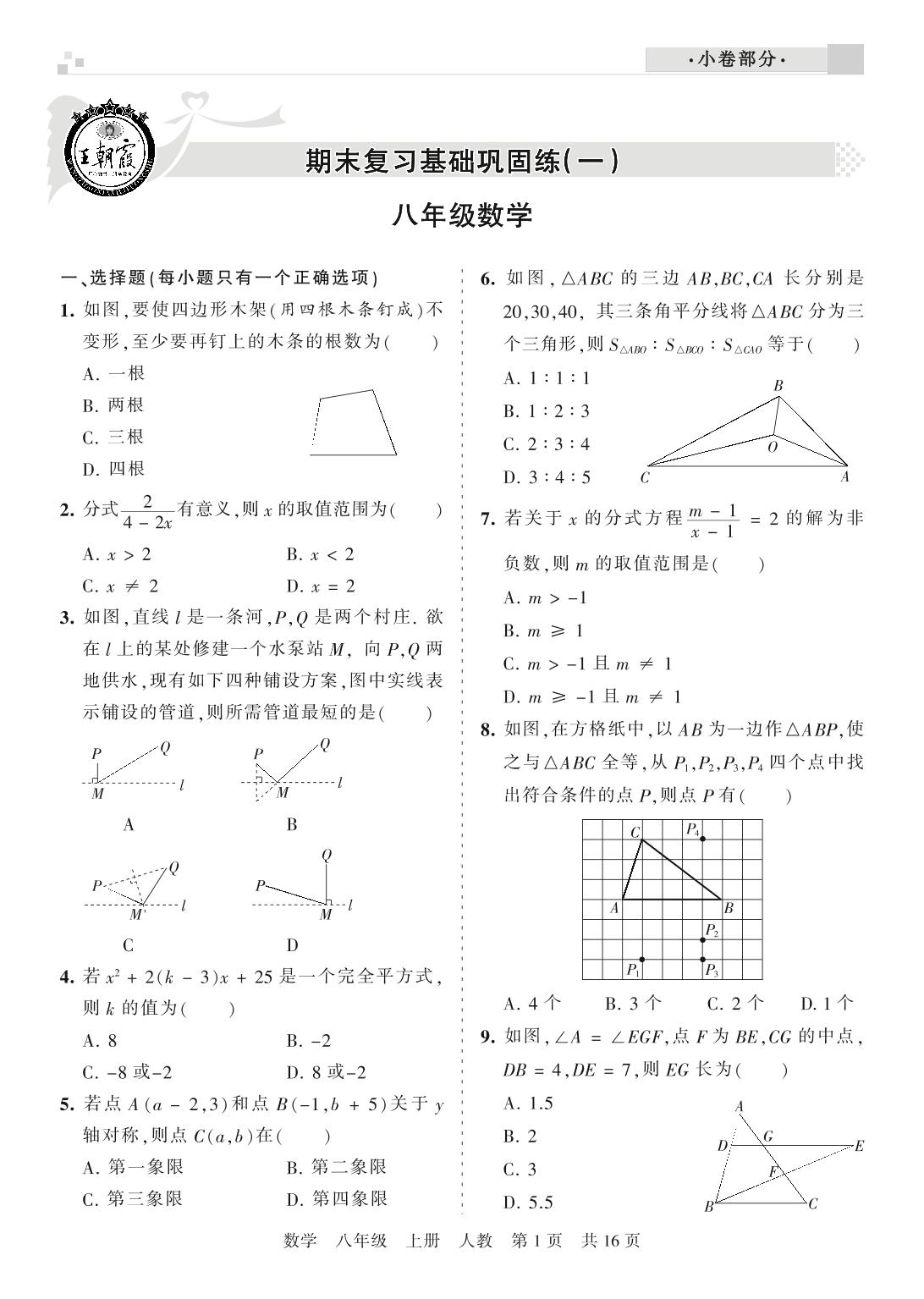 王朝霞期末小卷——期末复习基础巩固练八年级上册数学(人教版)_R210806103811【0】