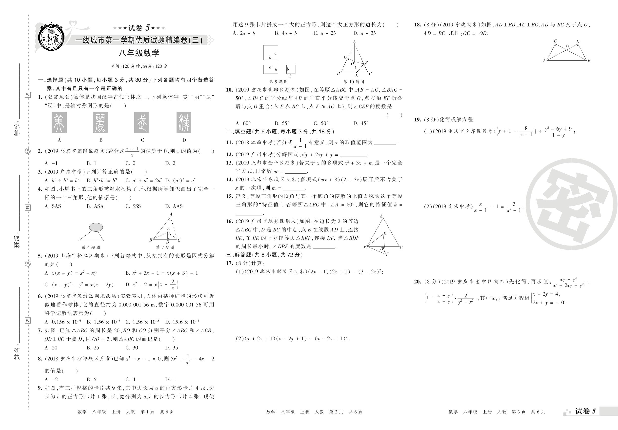 一线城市优质试题精编卷(三)八年级上册数学(人教版)【5】