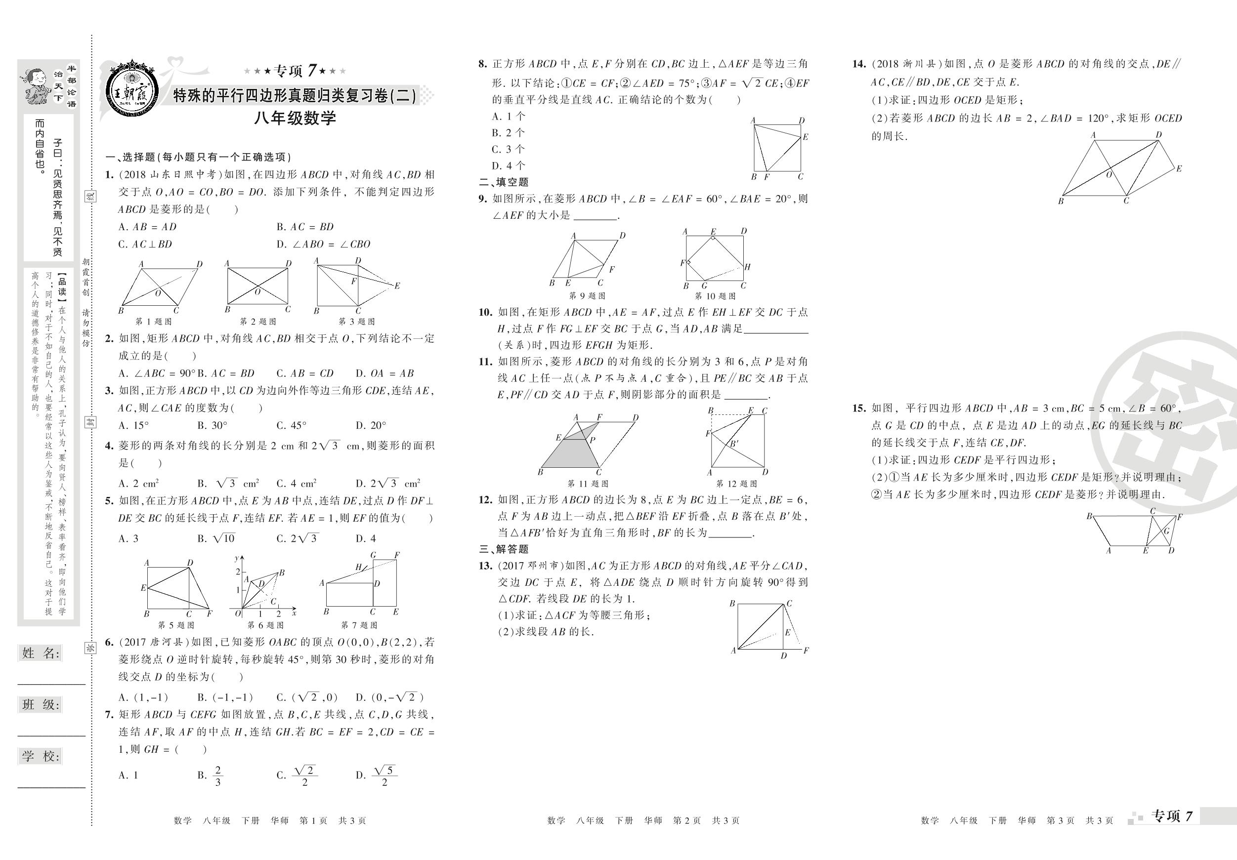 王朝霞期末专项卷——特殊的平行四边形(二)、数据的整理与初步处理真题归类复习卷八年级下册数学(华师版)_R210806104012【0】