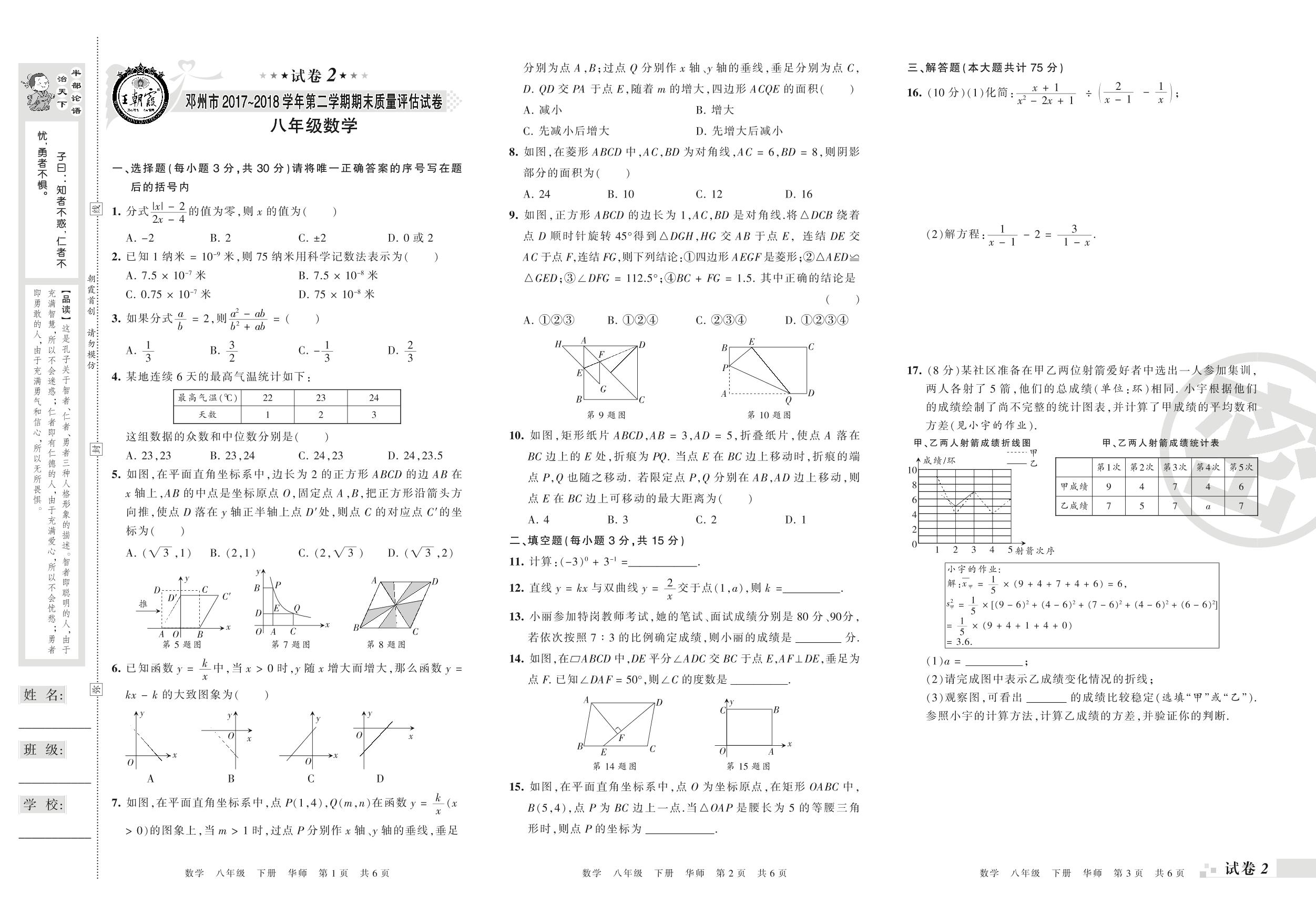 2017-2018学年第二学期邓州市八年级数学试卷(华师版)【2】