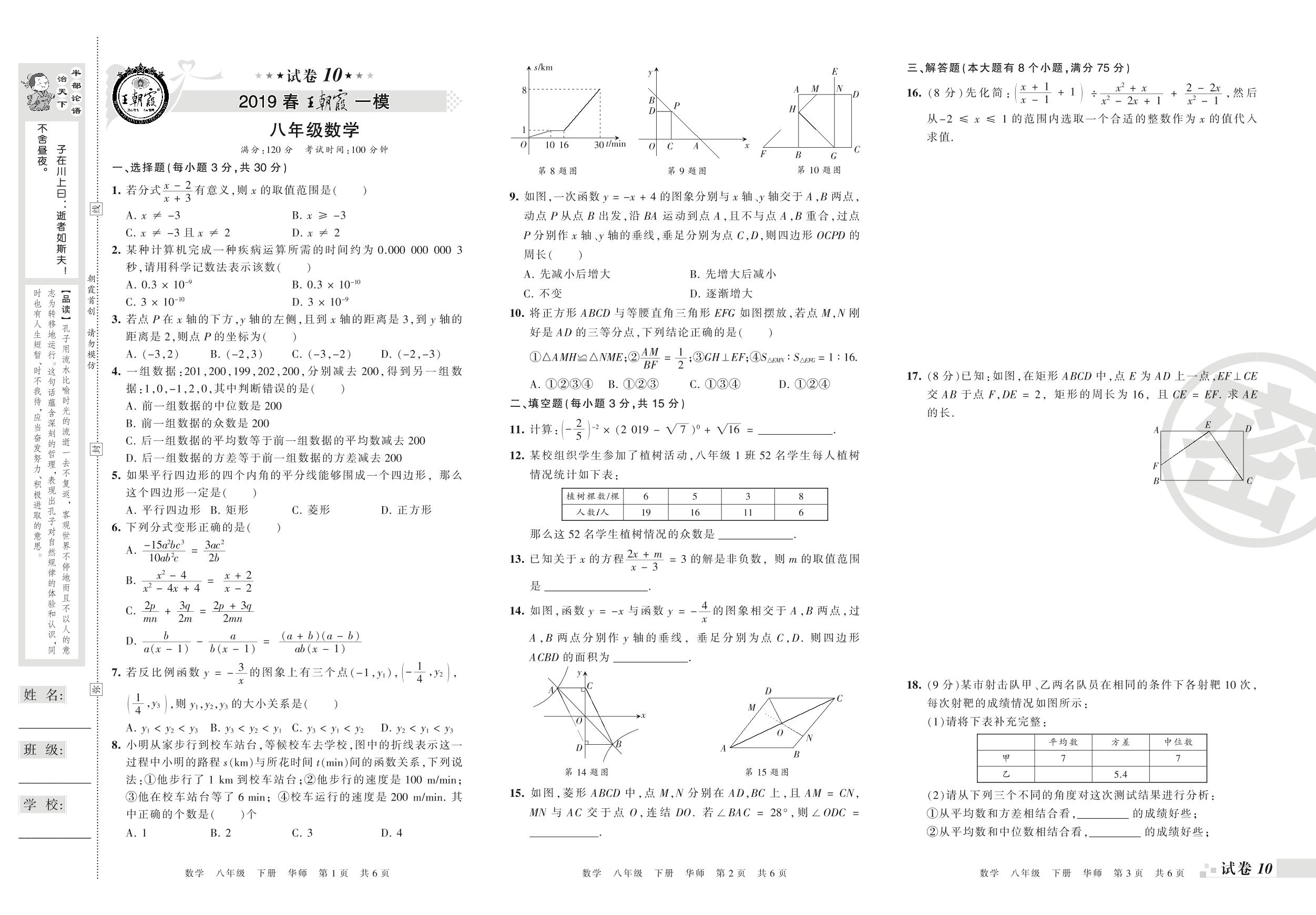 王朝霞期末模拟卷八年级下册数学(华师版)_R210806104107【10】