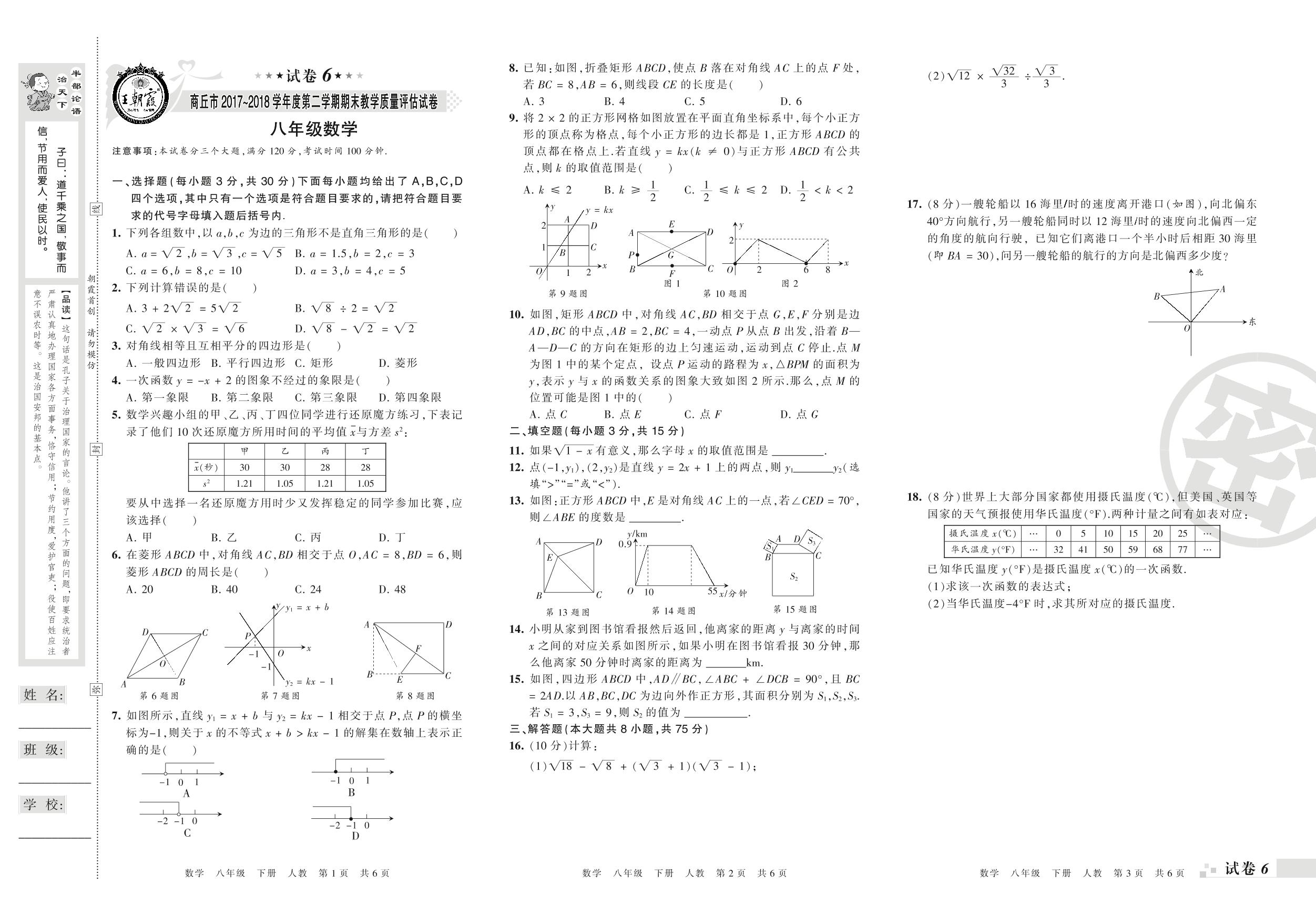 2017-2018学年第二学期商丘市八年级数学试卷(人教版)【6】