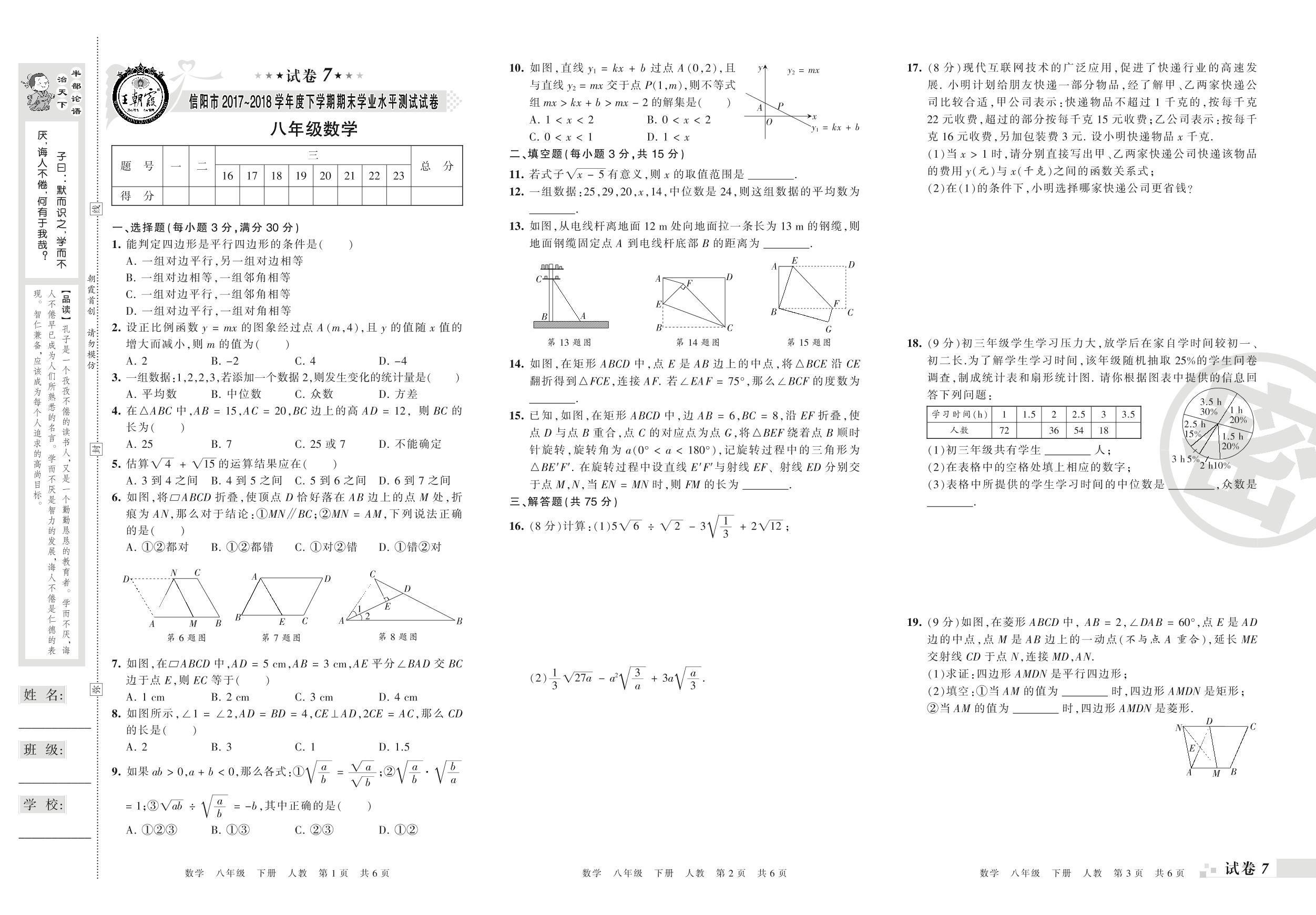 2017-2018学年第二学期信阳市八年级数学试卷(人教版)【7】