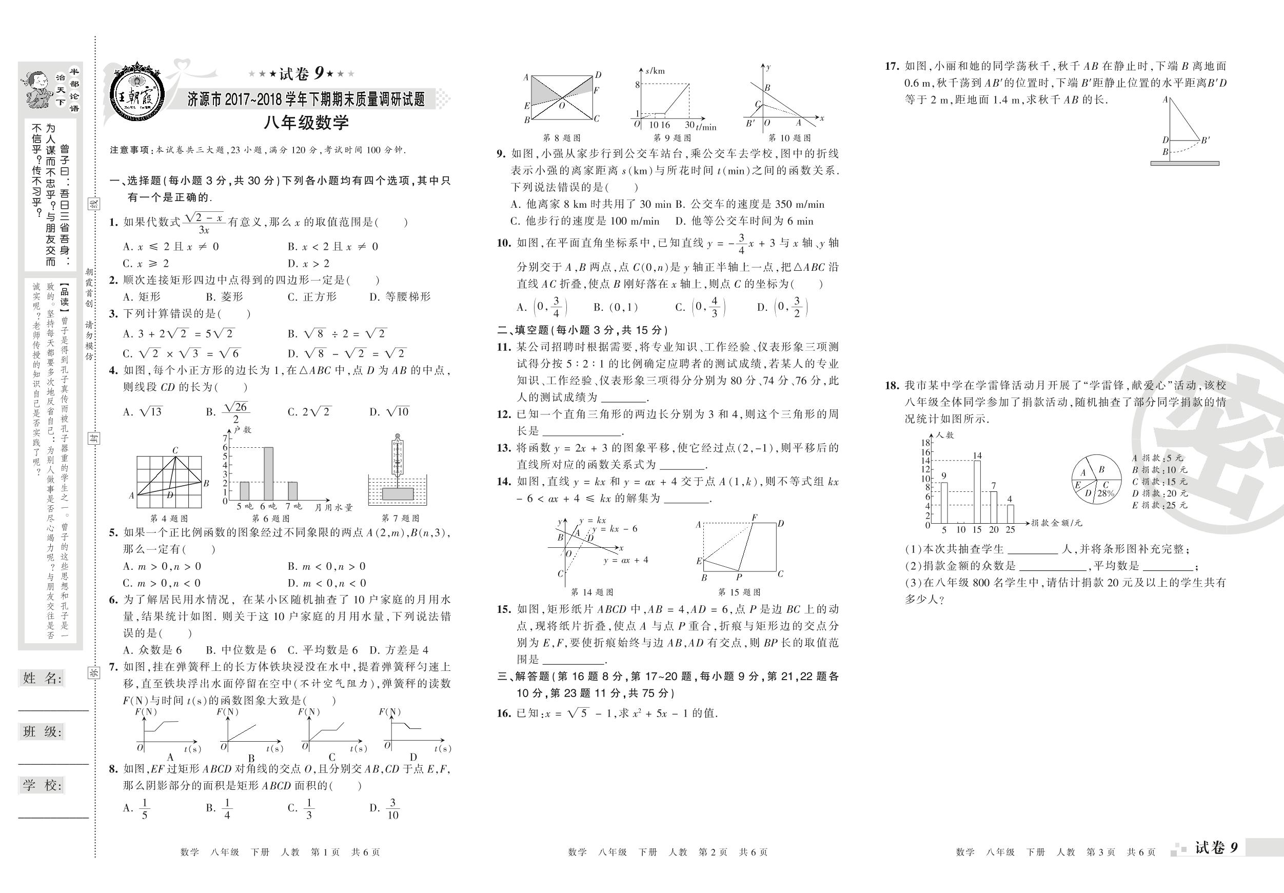 2017-2018学年第二学期济源市八年级数学试卷(人教版)【9】